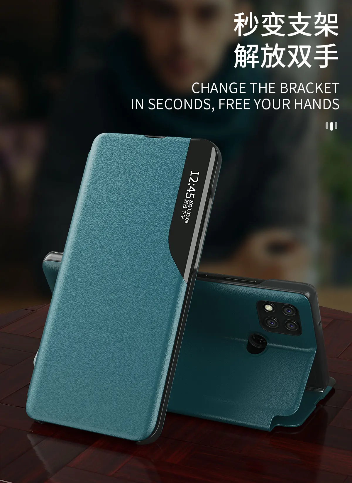 Кожаный магнитный флип-чехол с окошком для Xiaomi Mi 10 POCO X3 Redmi 9C NFC 9A Readmi Note 9s 9 8 Pro 8T