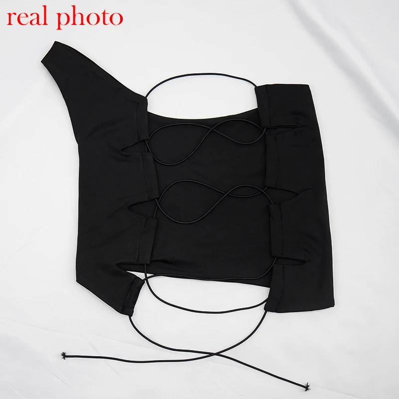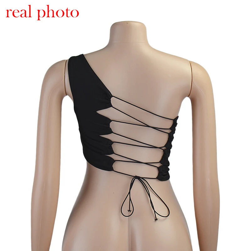 Женский укороченный топ на одно плечо, модный пикантный топ с открытой спиной, на шнуровке, однотонный бандажный Топ без рукавов, на лето