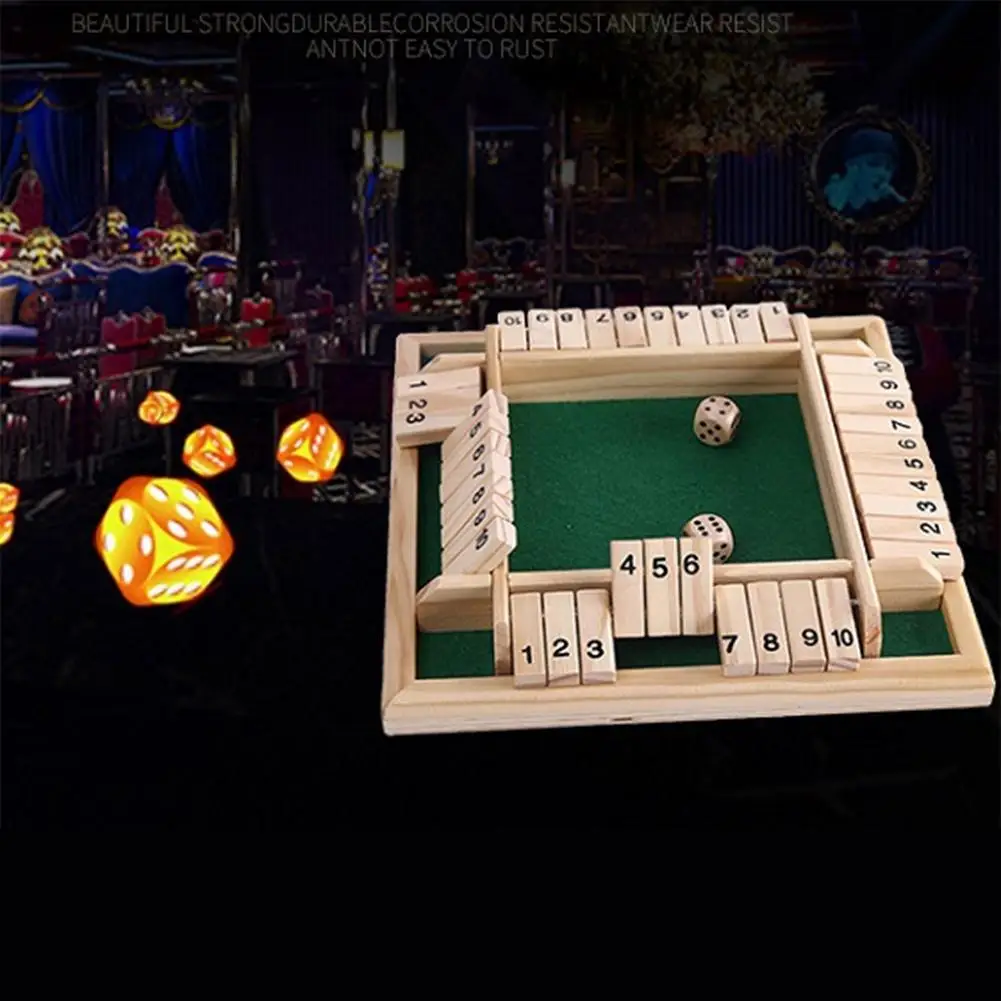 Игра Shut The Box для 1-4 игроков, Деревянная Классическая 4-сторон...
