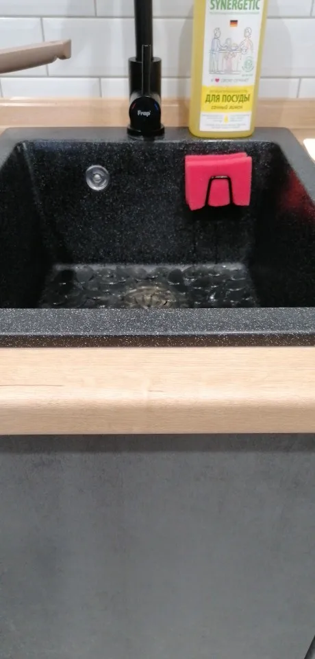 Аккуратно сделана, надеюсь, что будет держаться на стенке раковины.