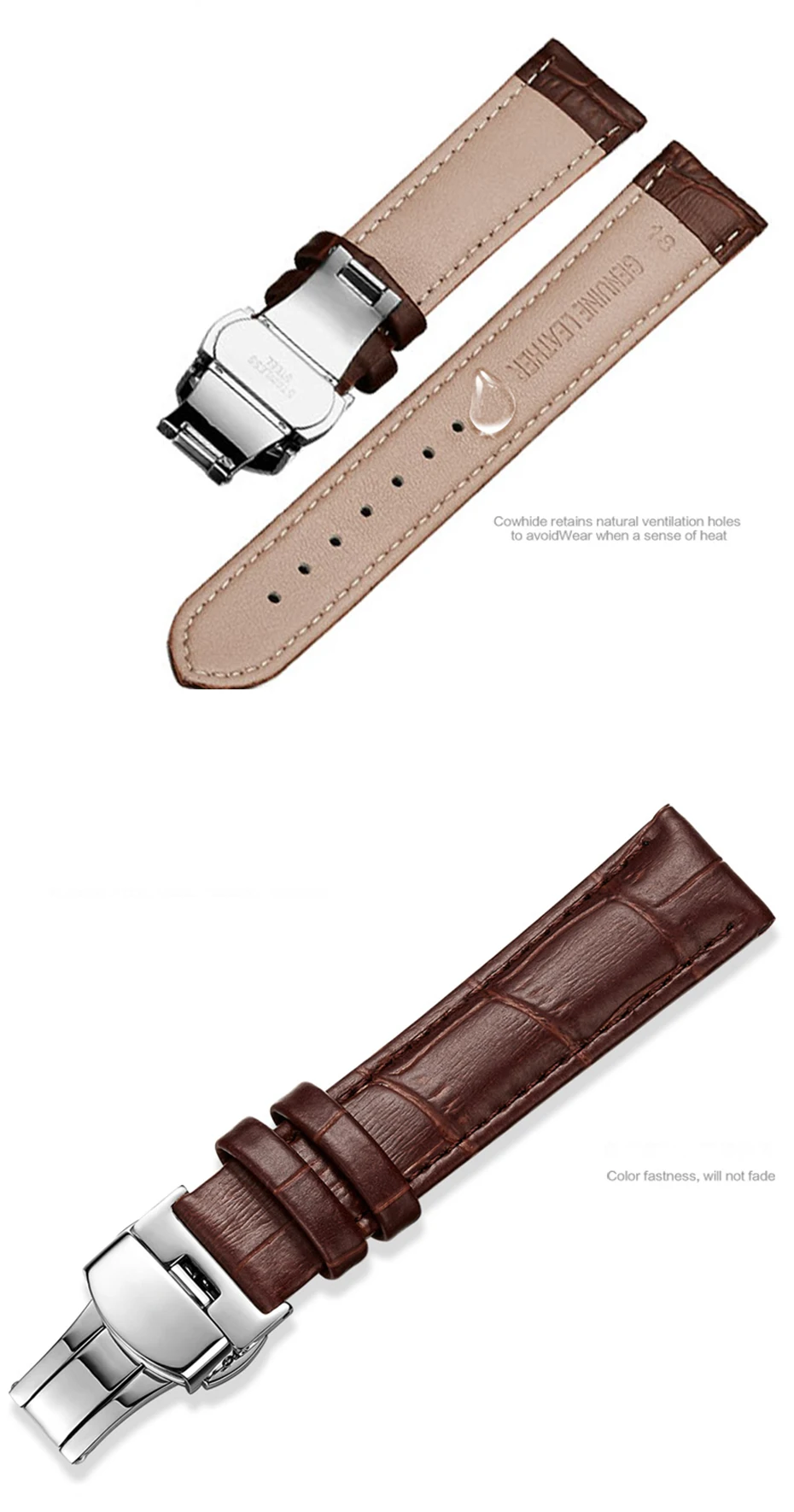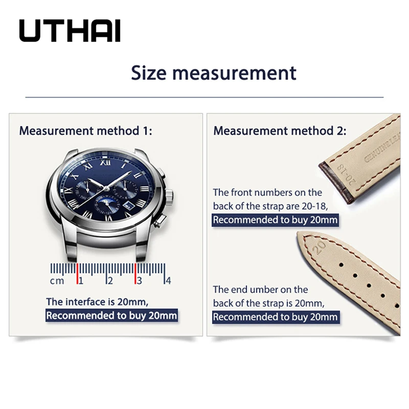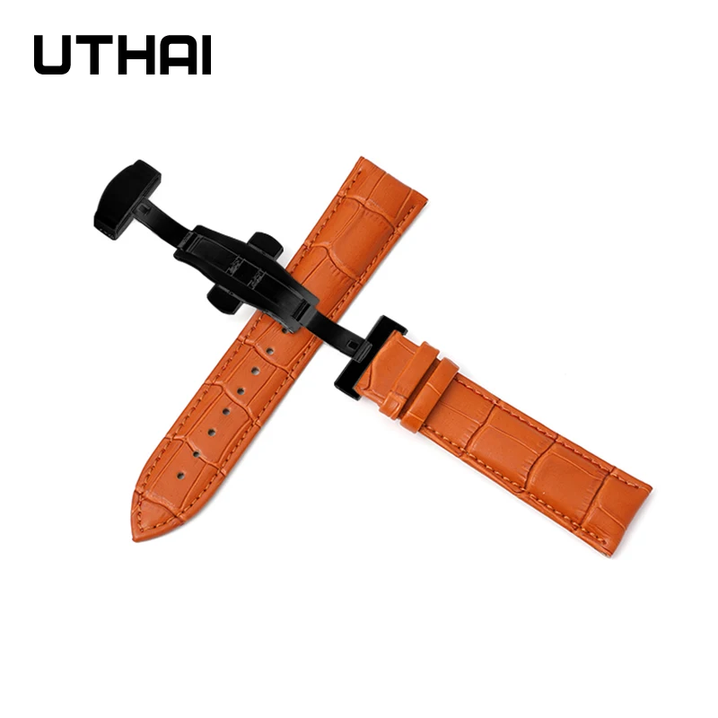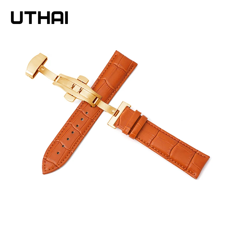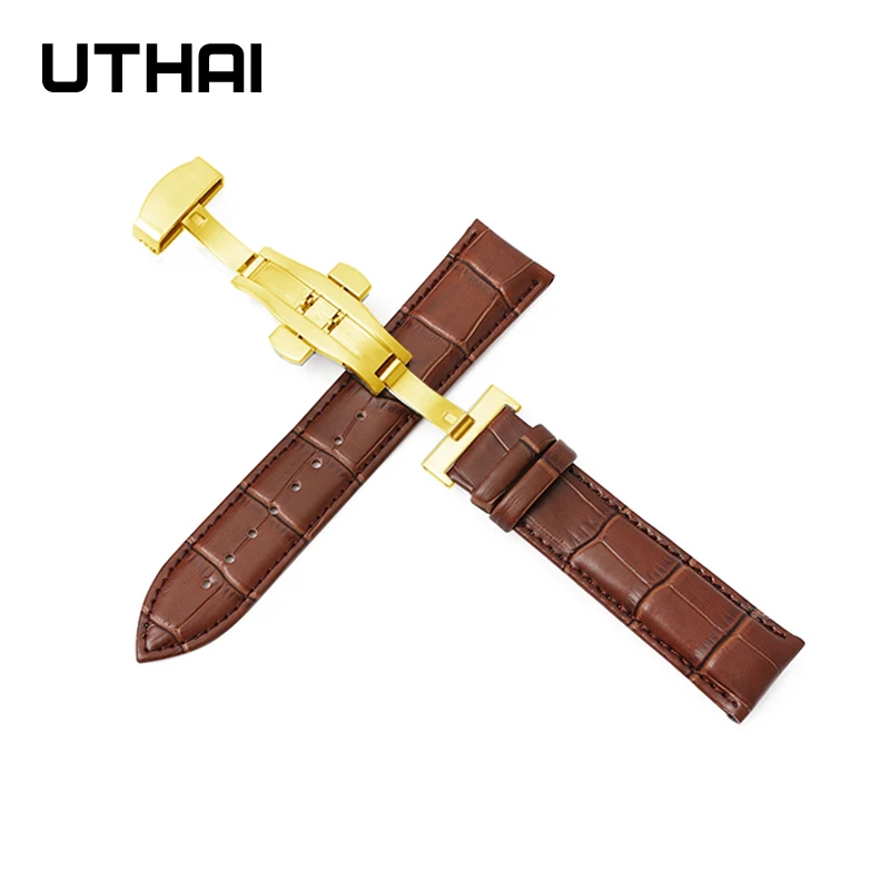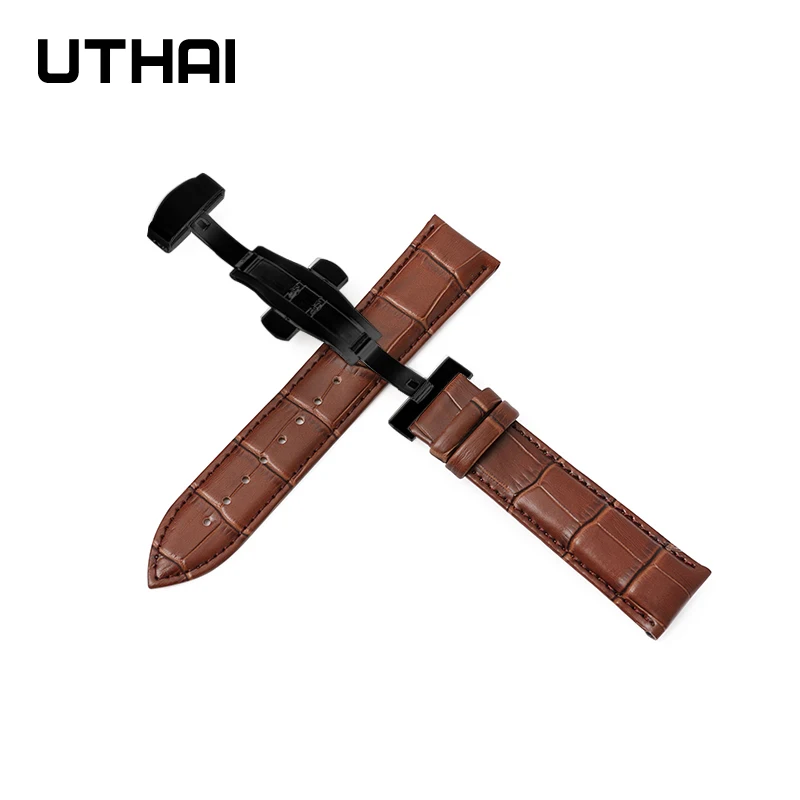 Браслет UTHAI Z09 из телячьей кожи с автоматической пряжкой-бабочкой, 12-24 мм, 316L