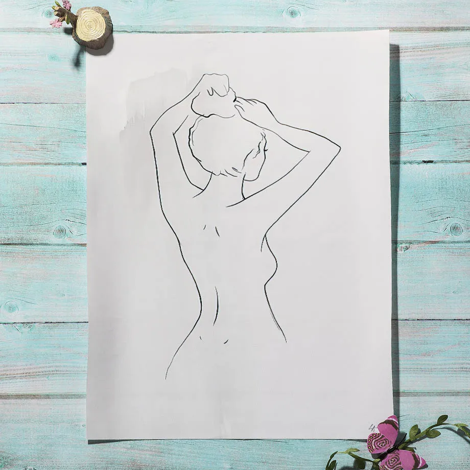 Плакат с телом обнаженной розовой женщины, однострочный эскиз, Женс...