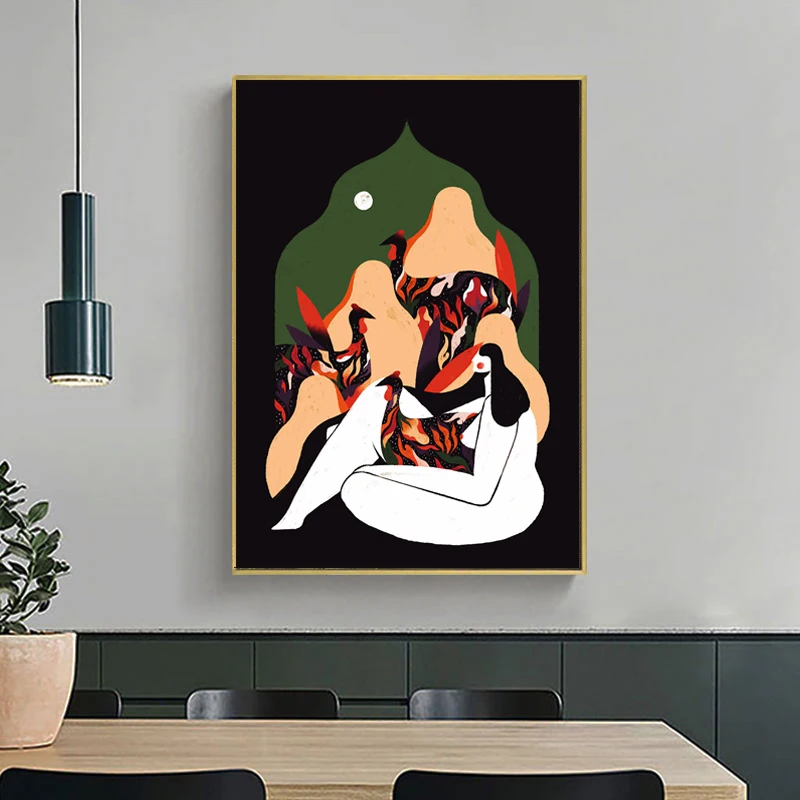Современная модная абстрактная Настенная картина с изображением животного, человека, постер на холсте в скандинавском стиле для гостиной, спальни, домашний декор без рамки