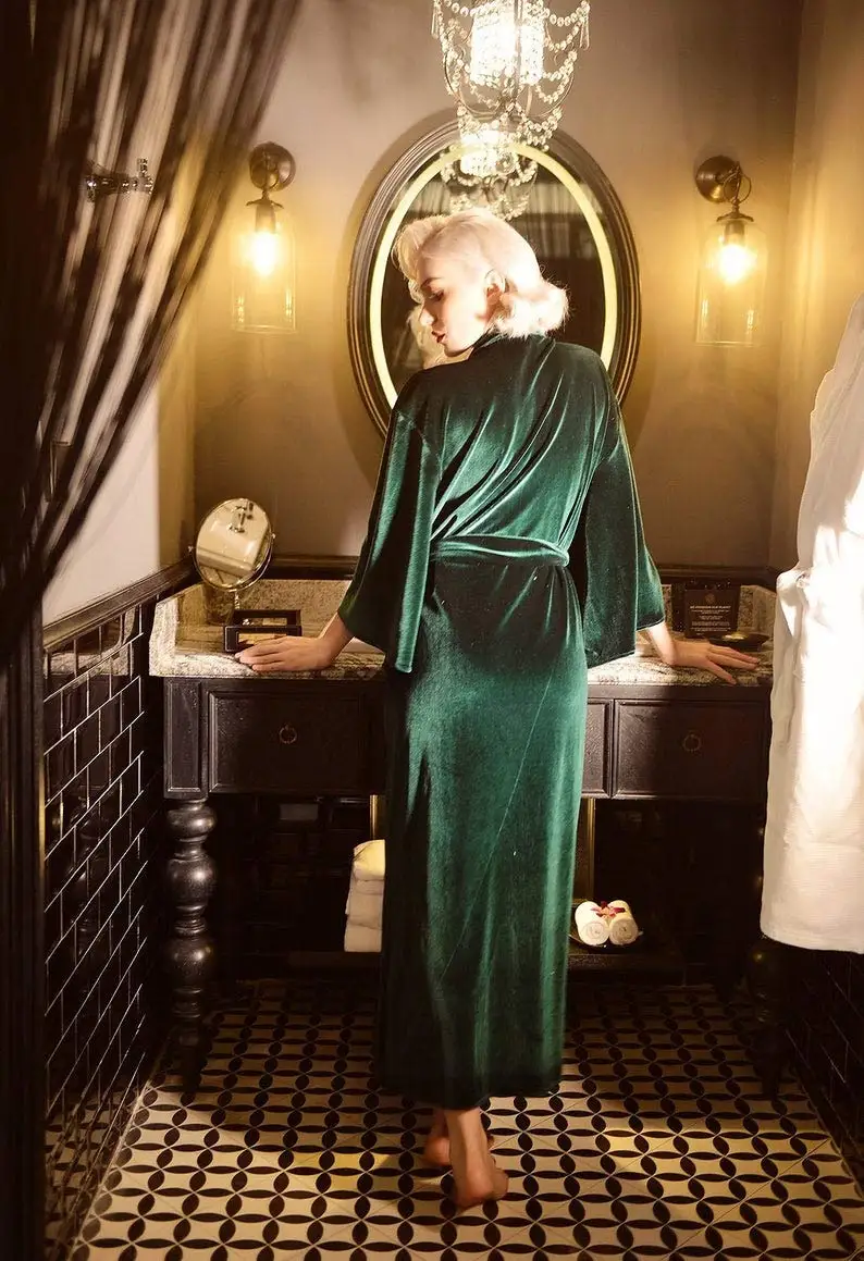 Женские бархатные халаты, мягкий пушистый халат-кимоно для женщин, свадебные халаты