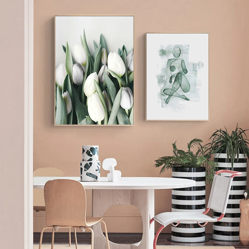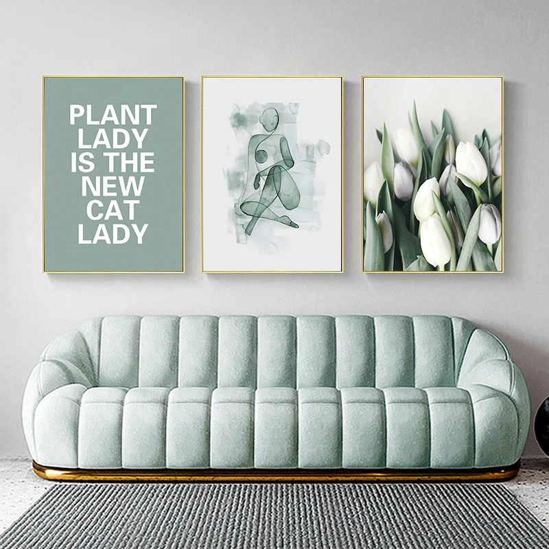 Скандинавский постер на холсте с изображением зеленых растений, цветов и окон, абстрактная женщина, искусство на стене, картина для украшения дома