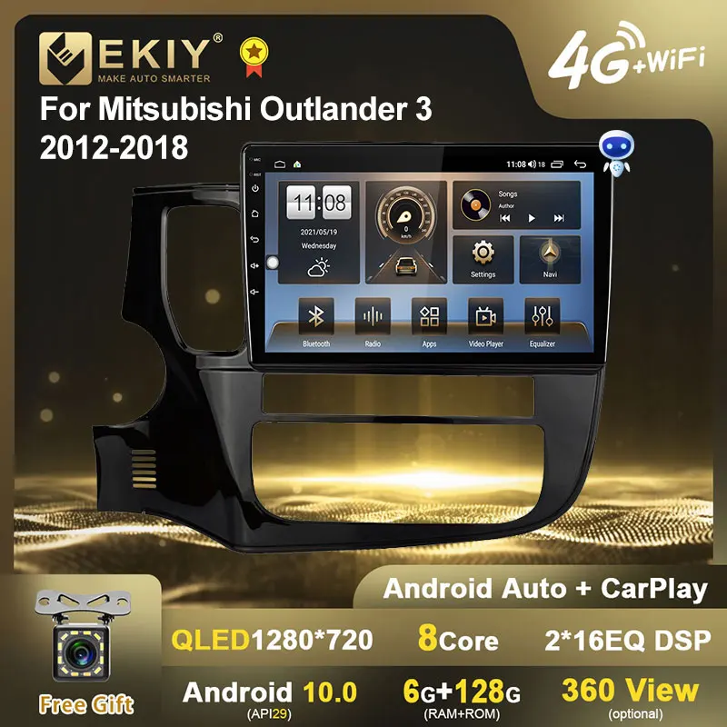 EKIY QLED DSPAndroid 10 автомобильное радио для Mitsubishi Outlander 3 GF0W GG0W 2012-2018 стерео Мультимедийный плеер GPS Навигация BT DVD