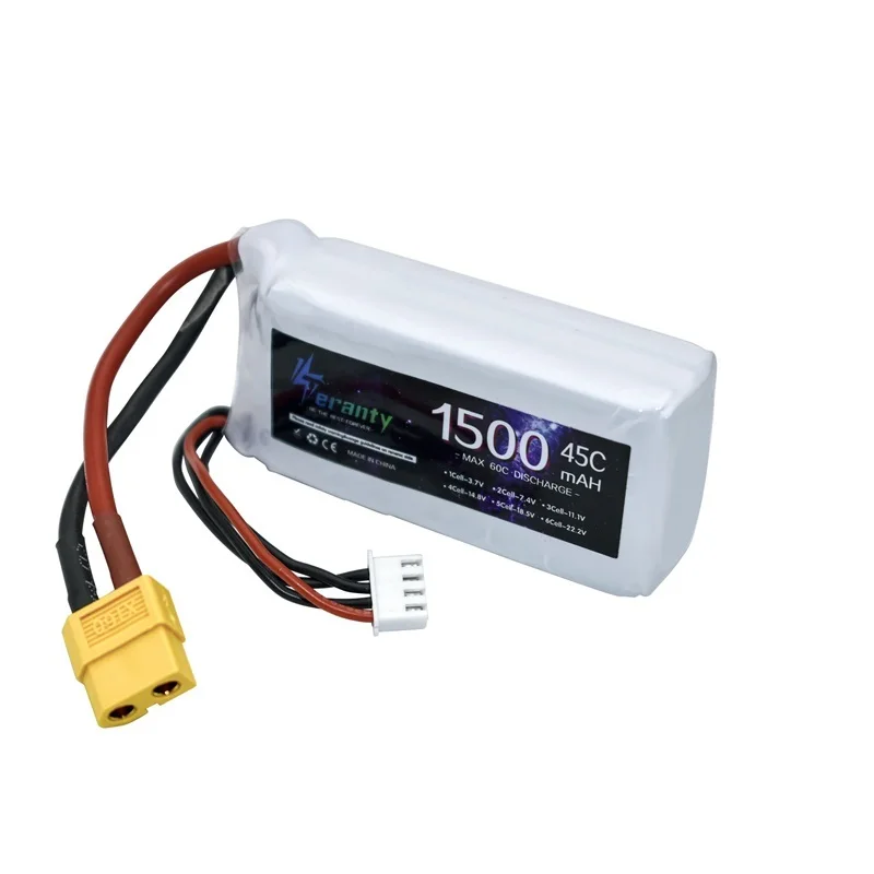 Тип изделия: перезаряжаемый литий-полимерный аккумулятор Емкость аккумулятора: 1500 мАч (100%) Скорость непрерывного разряда: 45C MAX 65C Размер батареи: 72*34*22 мм (± 2 мм)Вес батареи: 108 г Вилка: штепсельная вилка T /XT60/JST и другая вилка (скажите мне)