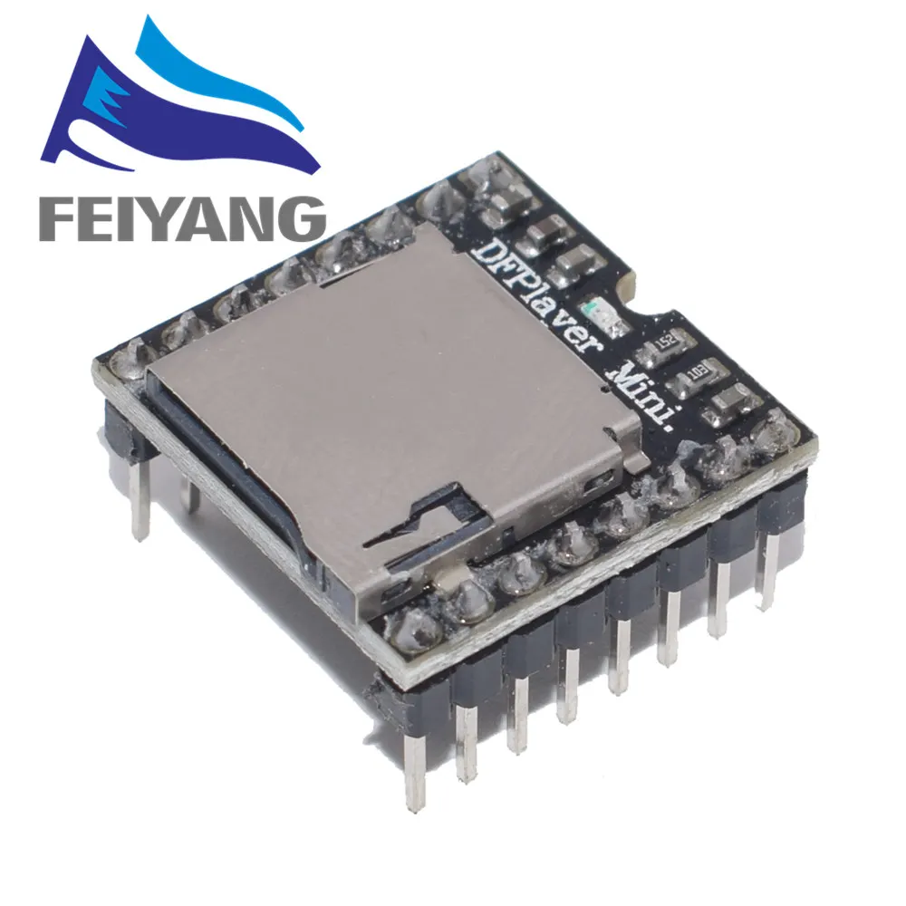 DFPlayer Mini-это компактный и недорогой MP3-модуль, который можно подключить непосредственно к динамику. Модуль с питанием от аккумулятора, динамиком, клавиатурой может использоваться отдельно или через последовательный порт управления, как для Arduino UNO или любого микроконтроллера с модулем последовательного порта. Сам модуль идеально интегрированного аппаратного декодирования MP3, WAV, WMA's. Хотя программное обеспечение поддерживает драйвер TF карты для поддержки FAT16, FAT32. Может выполняться с помощью простой последовательной команды, воспроизводит заданную музыку, а также как воспроизводит музыку и другие функции, без утомительного низкого уровня, прост в использовании, стабильный и надежный. Технические характеристики 1, поддерживает частоту дискретизации (кГц): 8/11,025/12/16/22,05/24/32/44,1/48 2,24-bit DAC выход, динамическим диапазоном, поддержка: 90dB, интерфейс TF карт: 85 дБ 3, полностью поддерживает FAT16, файловую систему FAT32, максимальную поддержку TF-карты 32 Гб, поддержка U-диска 32 ГБ, 64 м байт NORFLASH 4, доступны различные режимы управления. Режим управления IO, последовательный режим, режим управления клавишей AD 5, функция широкополосных языковых точек, вы можете приостановить воспроизведение фоновой музыки. Реклама завершена, воспроизведение фонового звука для продолжения воспроизведения 6, аудио данные отсортированы по папкам, поддерживает до 100 папок, папки могут назначать каждые 255 треков 7,30 уровня регулируемой громкости, регулируемый EQ 6 Применение 1, автомобильная навигация голосовое вещание 2, инспекторы по дорожному транспорту, голосовые подсказки 3, станция поезда, Голосовые подсказки для автобусной станции Проверка безопасности 4, электричество, телекоммуникация, финансовые операционные голосовые подсказки 5, транспортное средство входит или выходит из канала для проверки голосовых подсказок 6, голосовые подсказки канала бортового контроля ** 7, многоканальная Голосовая сигнализация или оборудование для голосового управления 8, Электрический экскурсионный автобус, безопасность с голосовыми уведомлениями 9, электрическое и механическое оборудование, сигнализация отказов 10, пожарная сигнализация, голосовые подсказки 11, автоматическое вещательное оборудование, регулярное вещание
