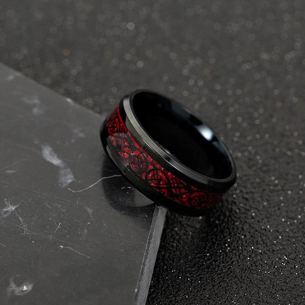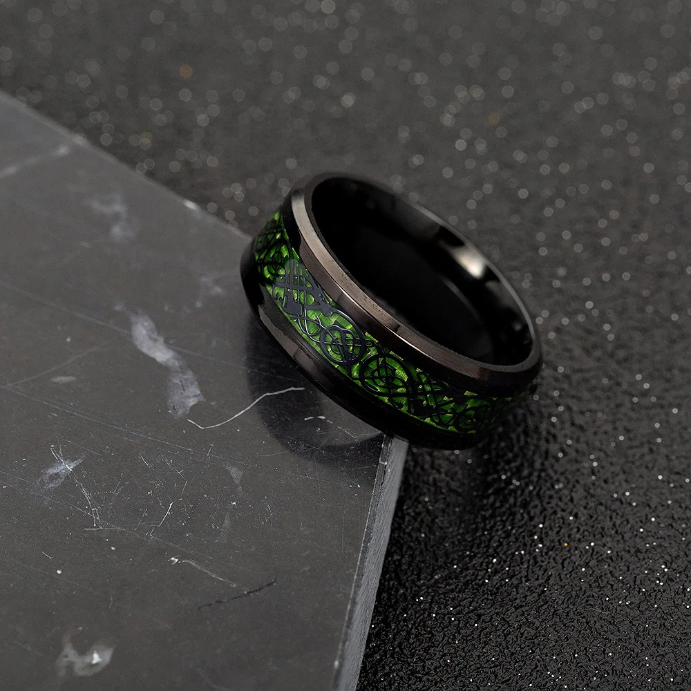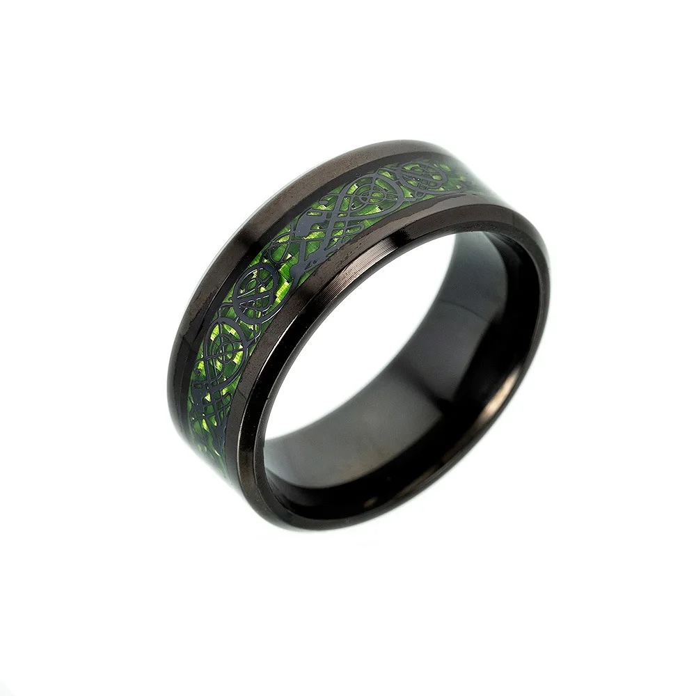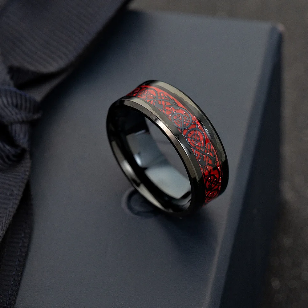 Кольцо с драконом из нержавеющей стали красное зеленое углеродное волокно инкрустация черным драконом удобное для мужчин обручальное кольцо Модные ювелирные изделия