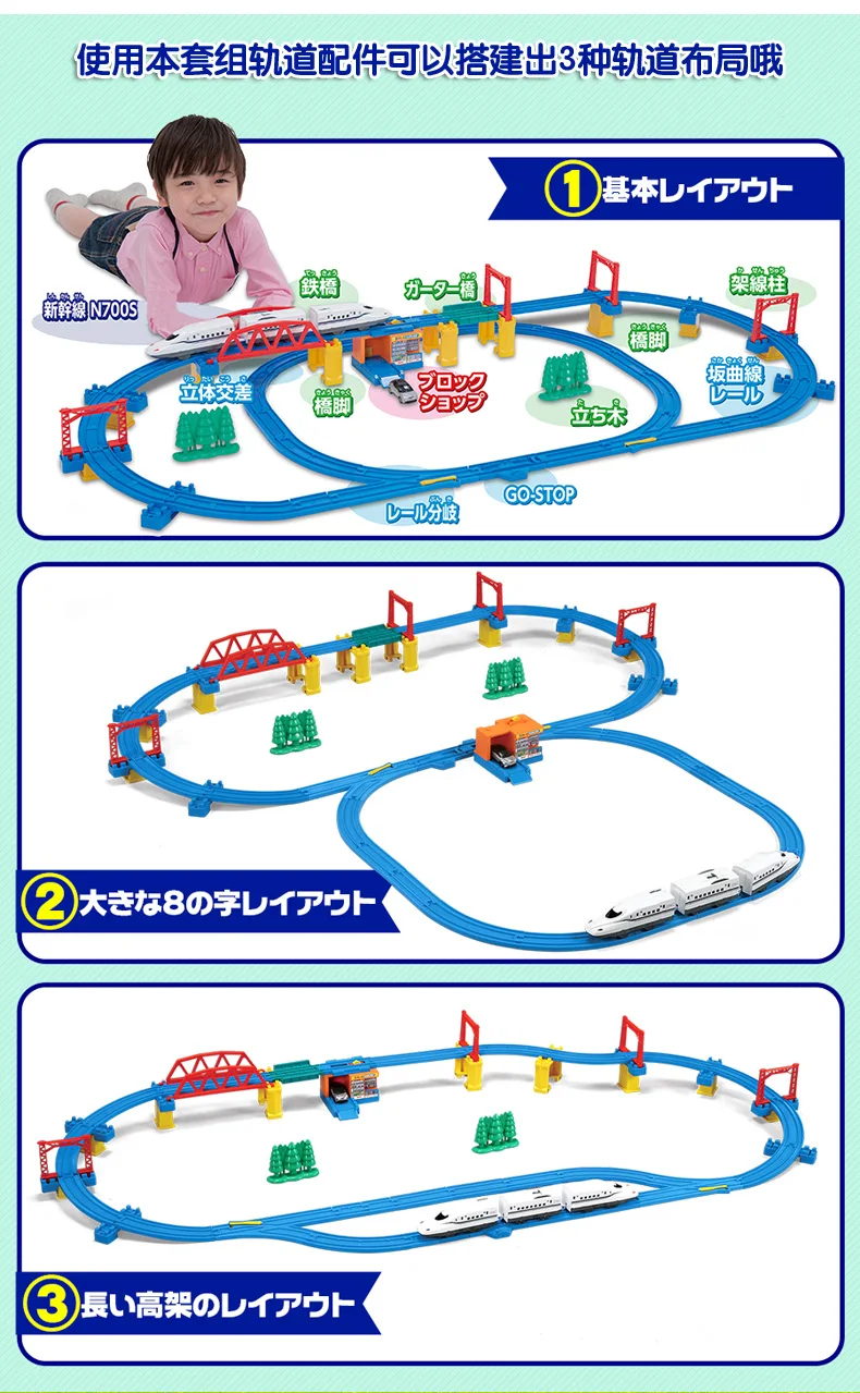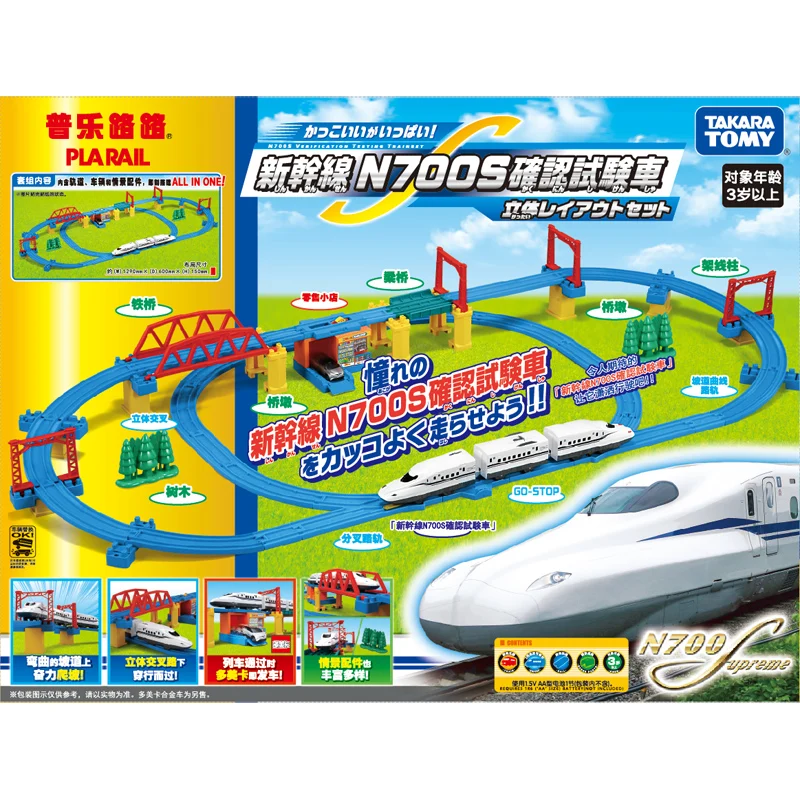 ③ Празднование начала запуска нового Shinkansen "N700S"! Комплект «все в одном»!Shinkansen "N700S", рельсы и сцены все включены, так что это идеальный предмет для тех, кто хочет начать плараил с этого момента!♦ В дополнение к популярным макетам, которые позволяют автомобилям взобраться вверх по наклону с «изгибом холма» и «перегонами», три макета можно собрать с этим набором самостоятельно.③ Это набор, полный игры, что вы можете наслаждаться прохладными сценами вождения синкансена, таких как повышенные треки и железнодорожные мосты.≥Войдите в «блочный магазин», где томика (* продается отдельно) отправляется, когда автомобиль проходит! Это сцена, где вы можете наслаждаться Tomica вылета играть в 3D или 2D в соответствии с раскладкой.● Если вы играете с отдельно продаваемым промежуточным автомобилем или шинкансеновым рельсовым комплектом, вы можете наслаждаться более мощной игрой, как настоящий шинкансен.Подробная информация о продуктеПрямой рельс (2), 1/2 прямой рельс (5), подвязочный мост (1), 1/4 прямой рельс (выпуклый) (1), 1/4 прямой рельс (вогнутый и выпуклый) (1), 1/4 прямые рельсы (неровности) (2), изогнутые рельсы (6), 1/2 Стопорные рельсы (1), поворотные рельсы (L) (1), поворотная рейка (R) (1), наклонная изогнутая рейка (A) (4), наклонная кривая рейка (B) (4), изогнутый рельсовый пьедестал L (2), изогнутый рельсовый причал M (2), изогнутый рельсовый причал S (2), блочный причал (3), железная мостовая рама (2), Однопроводная мостовая опора (4), стоящее дерево (полуцельное) (2), блочный цех (1), блок магазин рельс (1), Shinkansen N700S 3-автомобильный поезд (1), уплотнение (1), макет (1), форма заказа деталей (1)