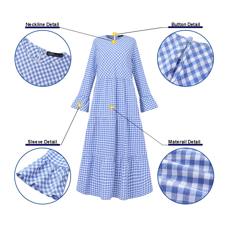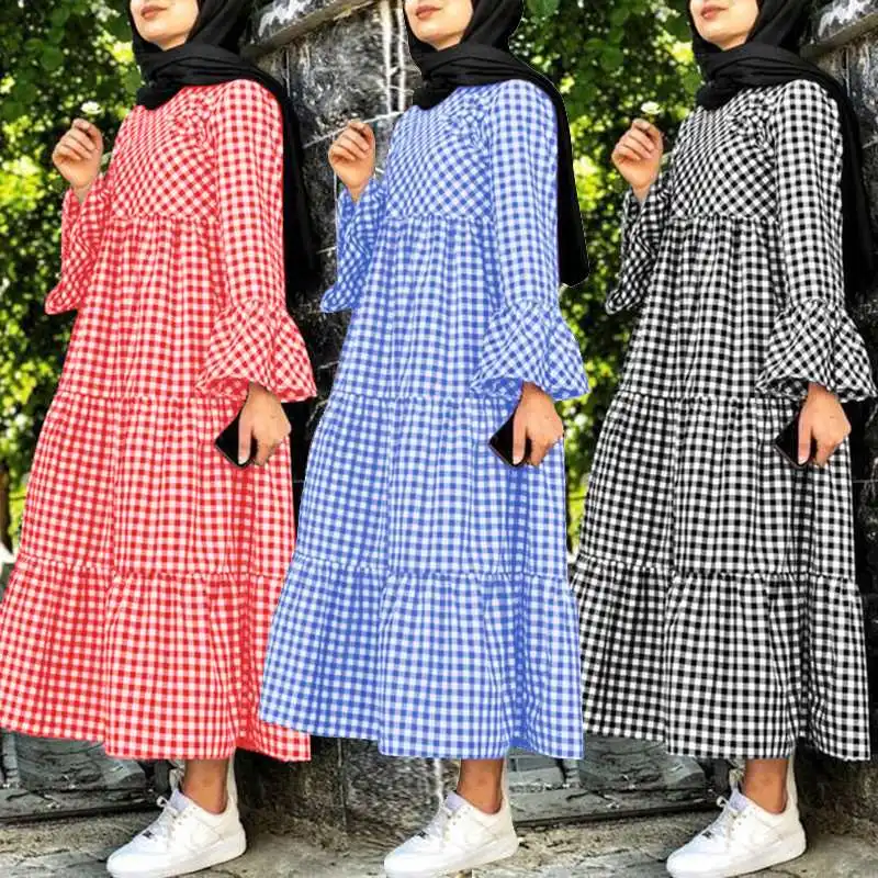 Платье ZANZEA в мусульманском стиле с длинным с расклешенными рукавами клетчатый в клетку, Осенний сарафан в стиле ретро для платья Хиджаб, 2021