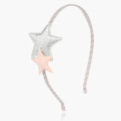 Ободок для волос с атласной лентой, металлический, серебристый, роз...
