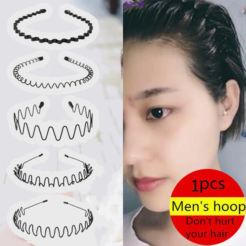 Однотонная резинка для волос для мужчин, женщин, мальчиков, девочек, черный металлический волнистый стиль, праздничная спортивная повязка для волос в стиле унисекс, 1 шт., Повседневные Головные уборы для взрослых