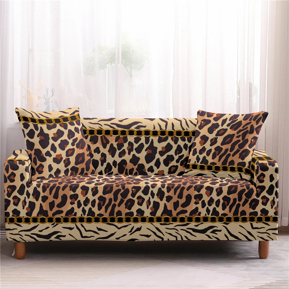 Эластичные Чехлы для дивана с леопардовым принтом, универсальный чехол для дивана с эластичной окантовкой для гостиной, чехол на 1234 места, L-образный чехол для дивана