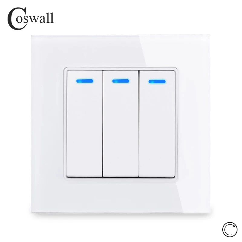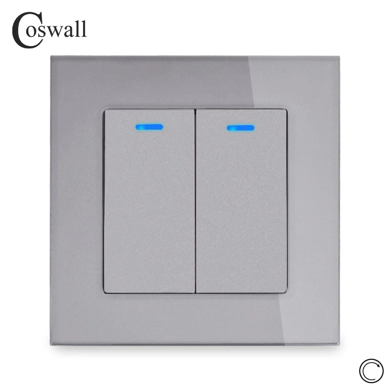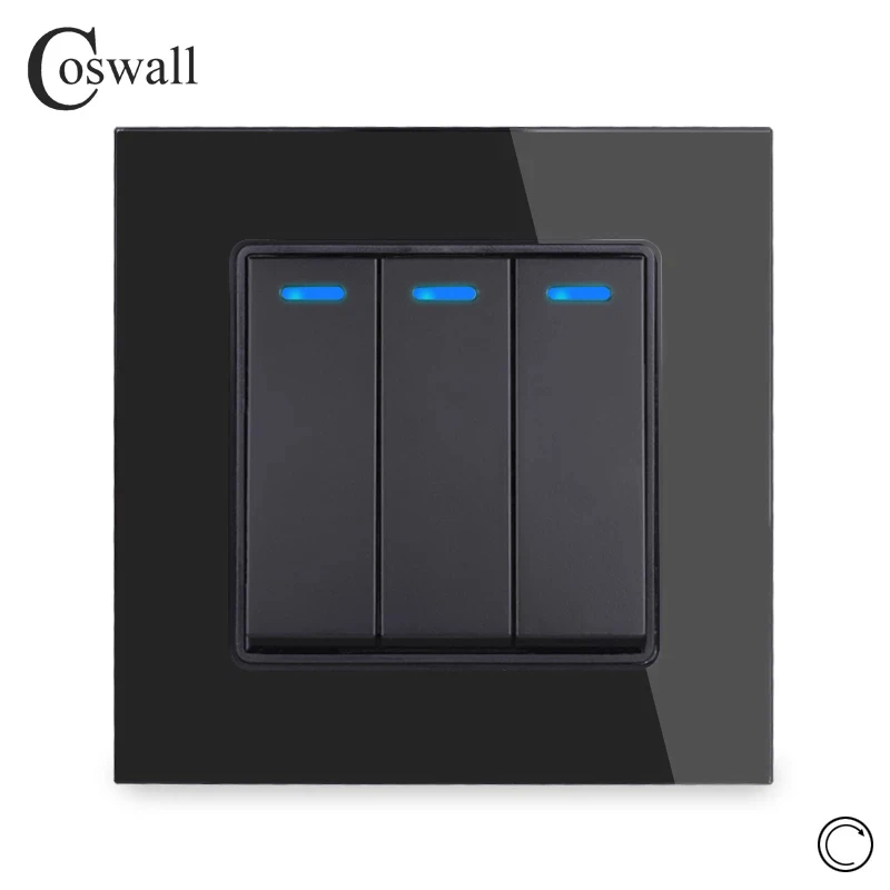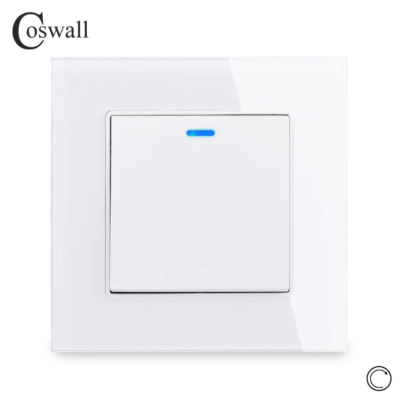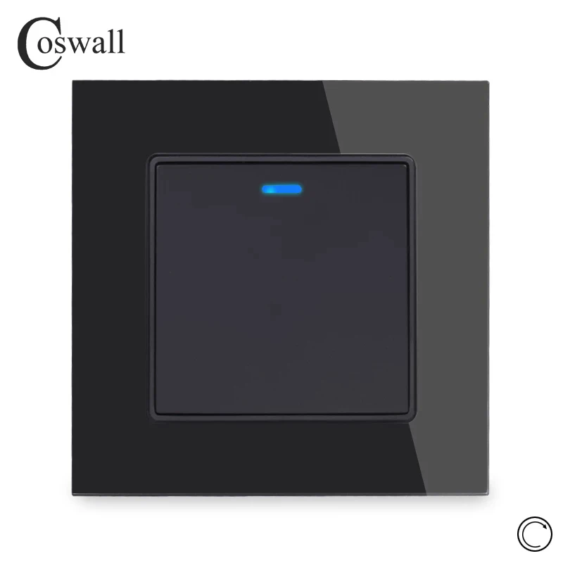 Стеклянная панель Coswall, 1234 клавиши, 1 канал, импульсный переключатель сброса, мгновенная контактная кнопка, настенный светильник ключатель с синей подсветкой, светильник-250 В