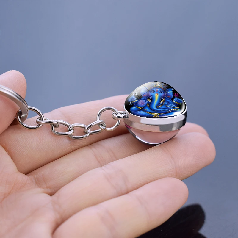 Слон Бог Ганеша брелок индуизм буддизм искусство ювелирные изделия двухсторонний стеклянный шар брелок для мужчин аксессуары для ключей