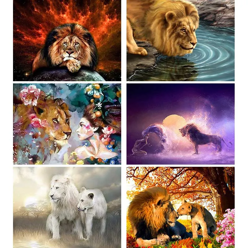 Полный 5D DIY Алмазная картина льва у бассейна Набор для вышивания крестиком Мозаика Стразы Алмазная вышивка Животные Декор O49