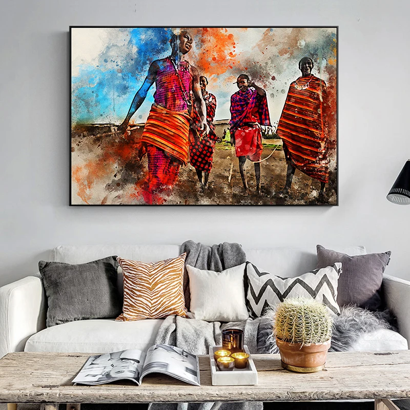 Акварель, Африканское искусство, танцующие племена массаи, холст, постеры и принты, абстрактные настенные картины для декора гостиной