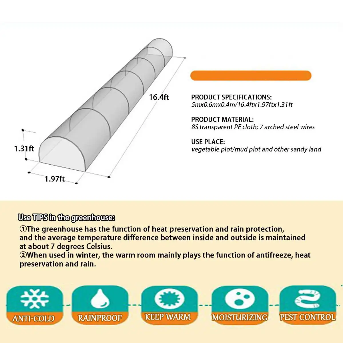 5 м длинный тоннель для сада, парника, регулируемая защита для выращивания растений, Прозрачный ПЭ для сада, укрытия для растений, фермы, сельского хозяйства