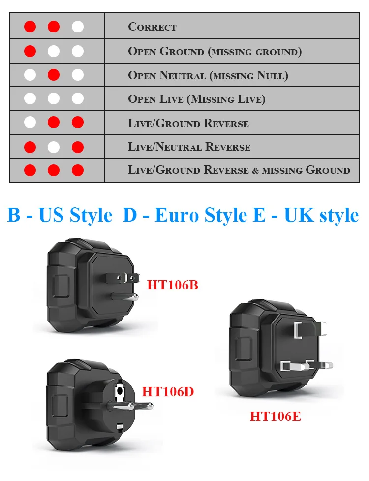 Тестовый разъем RCD для проверки электрической цепи, 48-250 В переменного тока, профессиональный детектор неисправностей цепи HT106, вилка для ЕС, Великобритании и США, нулевой заземляющий выключатель, видоискатель под напряжением, ЖК-дисплей