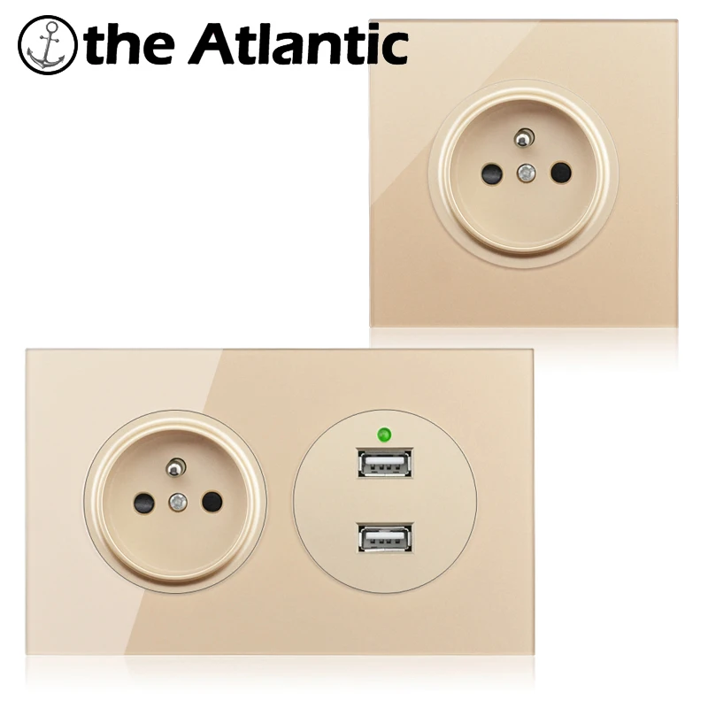 FR Франция Мощность розетка с двойным USB Зарядное устройство двойной разъем Польша Чехия Словакия Бельгия электрическая розетка золото Стекло 146 мм переходник usb,разетка с usb для дома,розетки