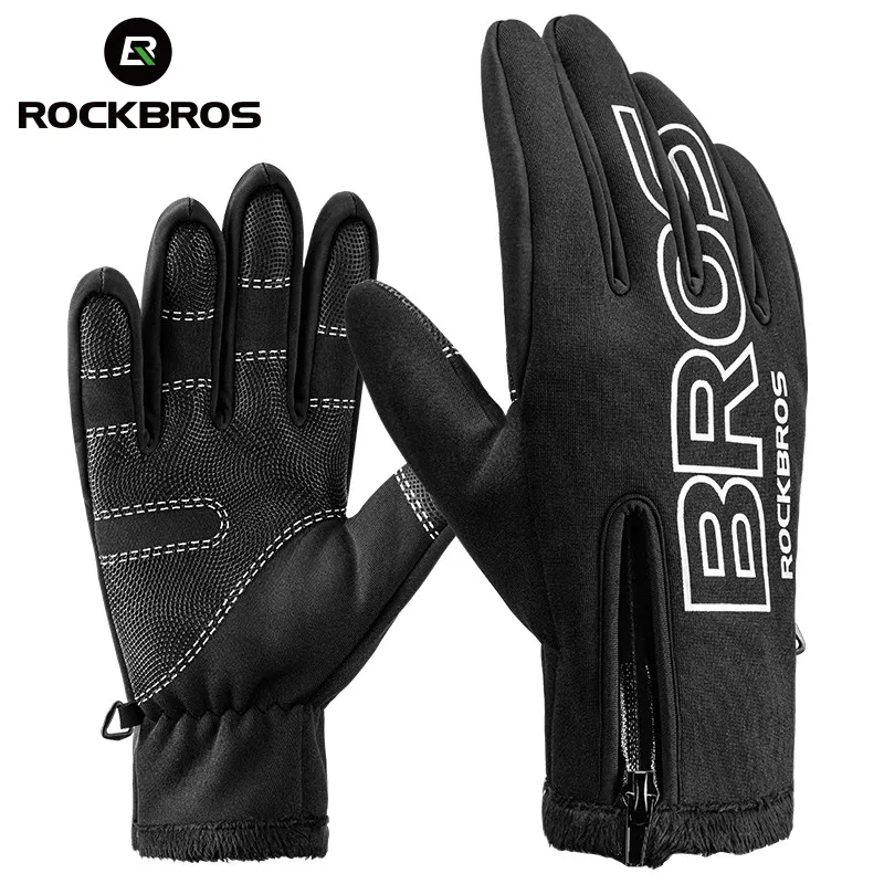 Велосипедные водонепроницаемые перчатки ROCKBROS, теплые Нескользящие митенки с закрытыми пальцами, для сенсорных экранов, для езды на мотоцикле и велосипеде, для зимы