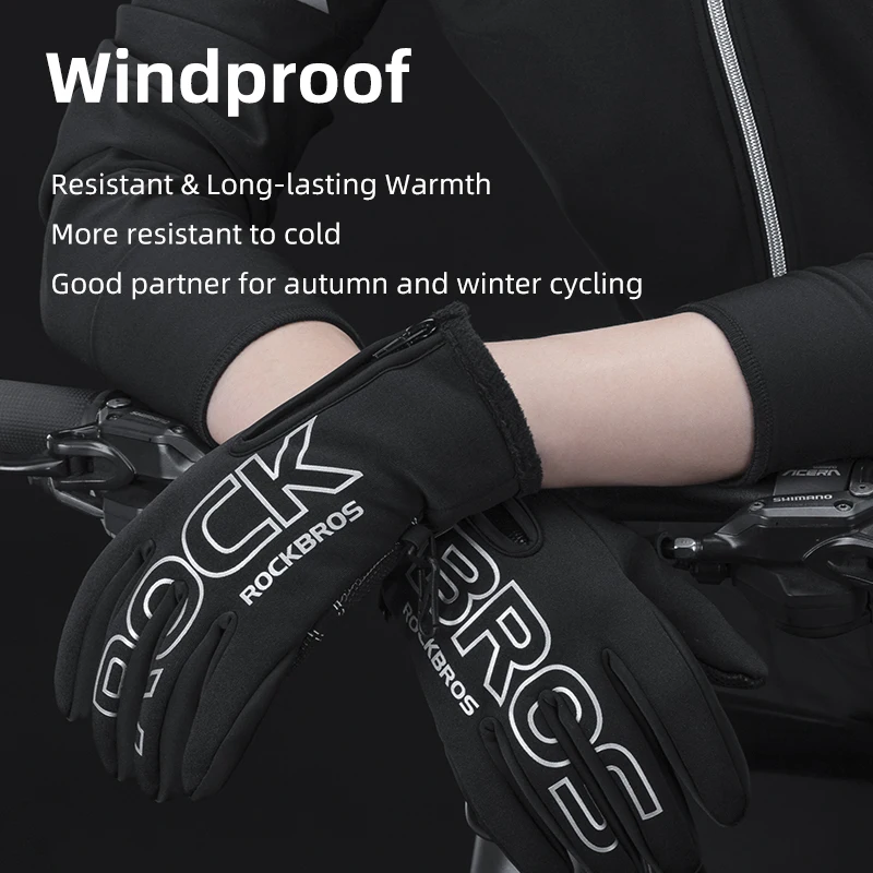 Ветрозащитные велосипедные перчатки ROCKBROS, теплые велосипедные п...