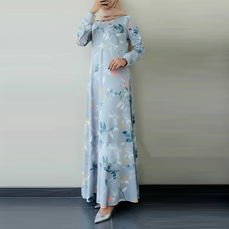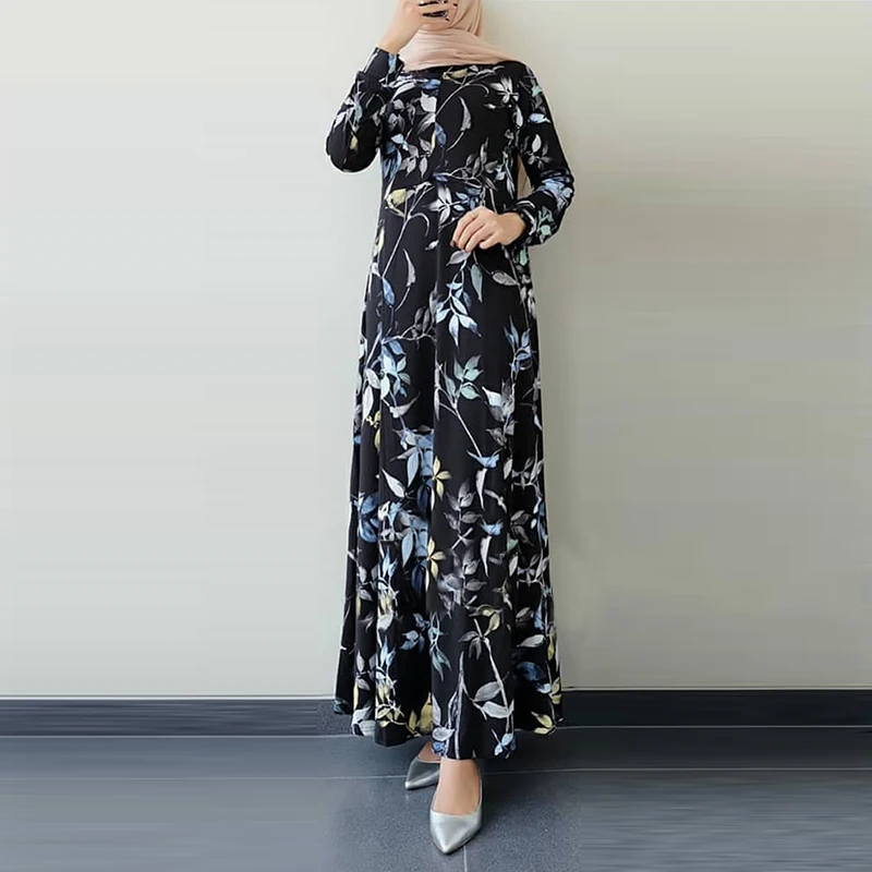 Женское длинное платье с длинным рукавом, Абая, Турция, хиджаб, длинное платье с цветочным принтом, джильбаб, мусульманская одежда, кафтан