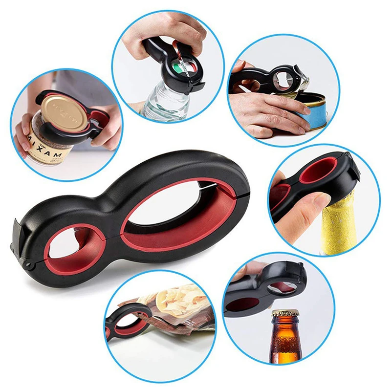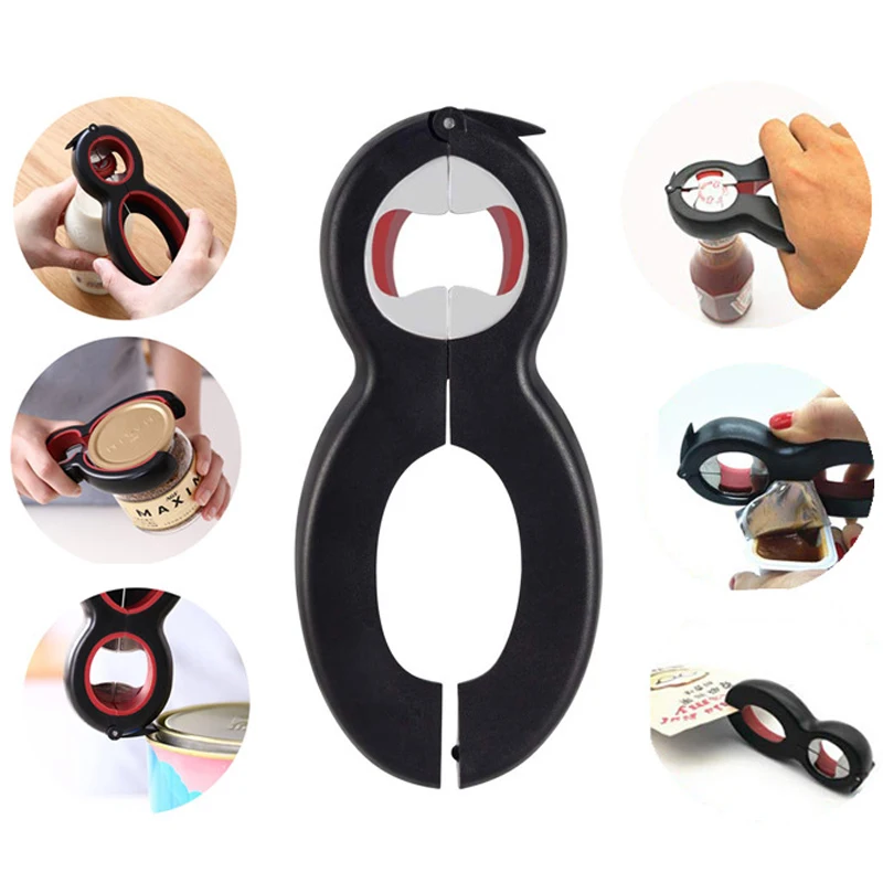 Все в одном, зажим для банок, консервный нож 6 в 1, многофункциональный, откручивающаяся Крышка для банок, пивных бутылок, банок открывалка в форме когтя