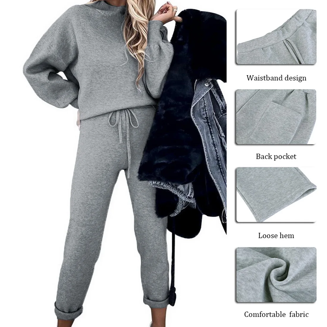 Female Spring SetsWarm Hoodies Sweater Pullovers Wide Legs Pants