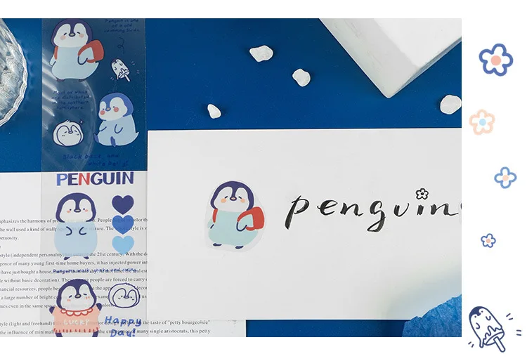 Скрапбукинг PaperMore PET 50x350 мм, водостойкий, Пингвин, коала, прозрачная клейкая лента