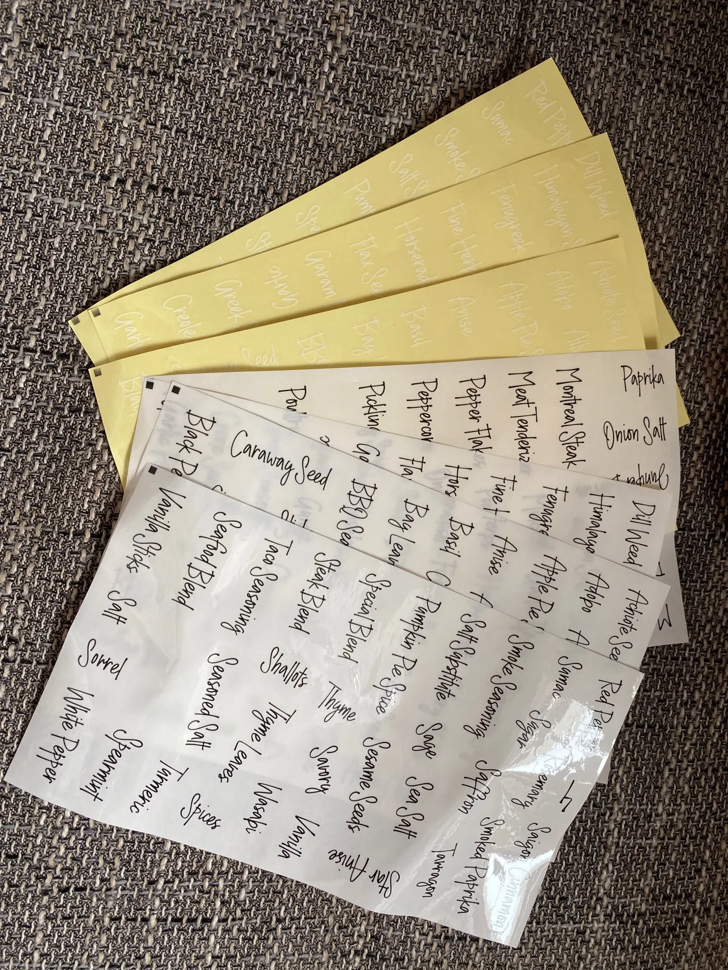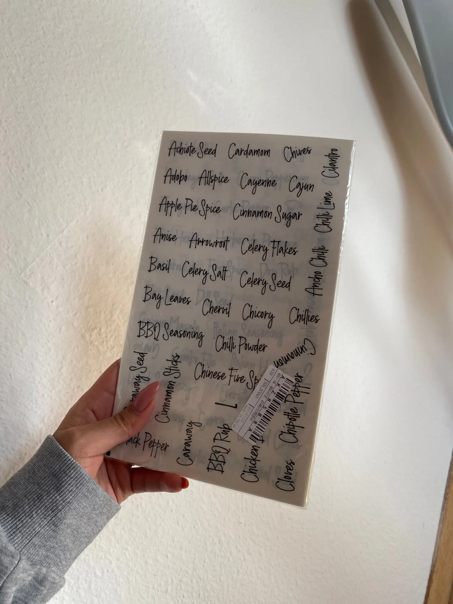 8 листов, но на самом деле всего 3 листа наклеек, а затем они повторяются. Не так много, я могу использовать, некоторые основные названия специй отсутствуют