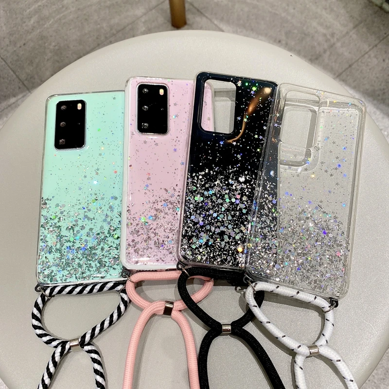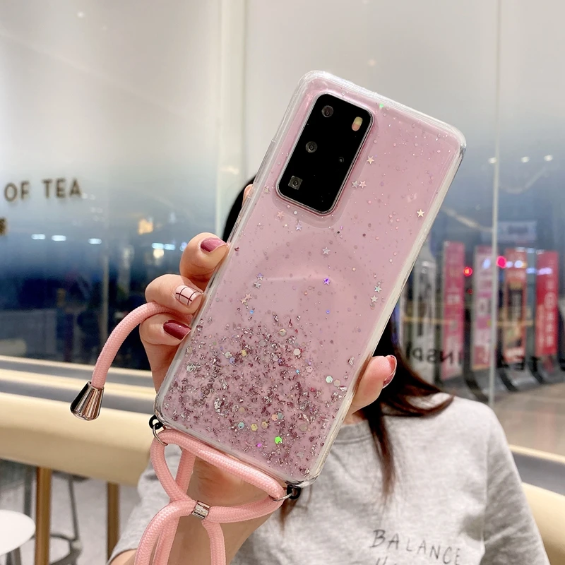 Блестящий чехол со шнурком для Huawei P30 Pro P20 P40 P10 Lite Y5 Y...