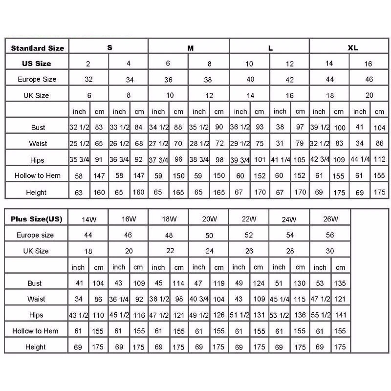 Если вы не можете найти подходящий размер в таблице размеров, пожалуйста, отправьте мне свои измерения, мы можем предложить бесплатное индивидуальное обслуживание. Бюст _ дюймов или _ см, Талия _ дюйма или _ см, Hips _ дюйма или _ см, С отверстиями по подолу (с обувью) _ дюйма или _ см, Ваш рост (с обувью) _ дюймов или _ см, Длина руки _ дюйма или _ см.