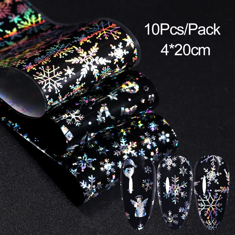 10 шт.упак. Рождественская обувь Серебряного и снежинки фольги фольга для Неил Арта передачи наклейки с блестками 3D Nail Art Наклейки дизайнерские Маникюр украшения