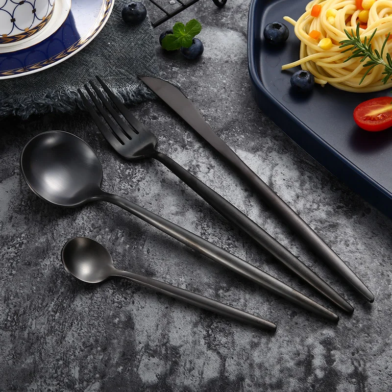 Набор черной посуды из нержавеющей стали 304, роскошные столовые приборы, домашняя вилка, ложка, нож, серебряные столовые приборы, Прямая поставка
