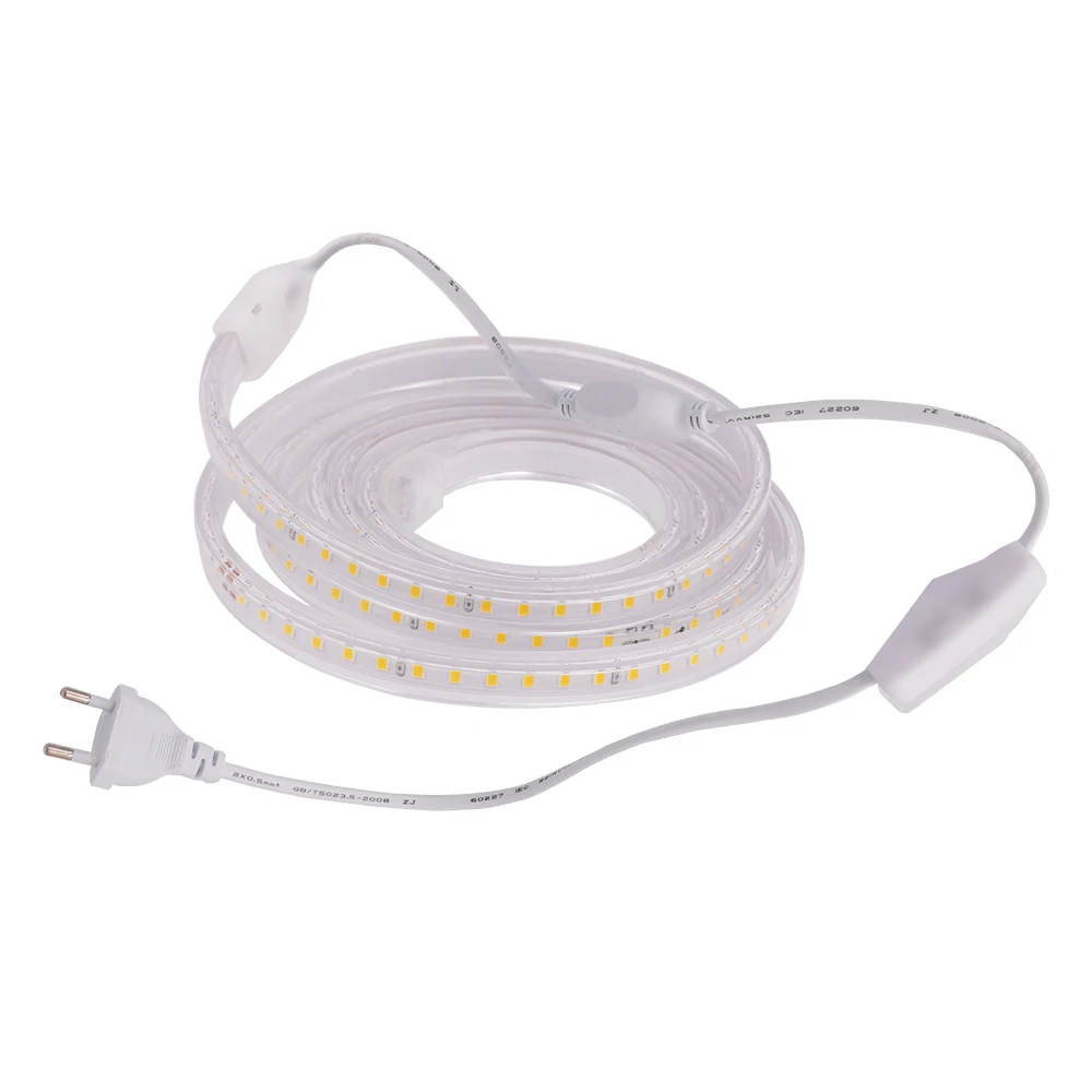 220 В Светодиодная лента 2835 Высокая безопасность Высокая яркость 120 светодиодов/м гибкий светодиодный ленточный светильник на открытом воздухе Водонепроницаемый светодиодный ленточный светильник с переключателем EU PlugСпецификация:Цветовая температура (K): теплый белый 3200K/белый 5500KКоличество СВЕТОДИОДНЫЙ: 120 светодиодный s/метрМощность стандарт вилки: 220V-штепсельная вилка европейского стандартаСтепень водонепроницаемости: IP67 Водонепроницаемый (можно использовать на открытом воздухе).Можно резать: каждые 100 смРазмер: w12mmxh6 мм