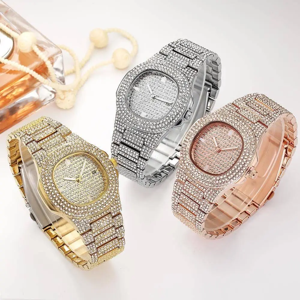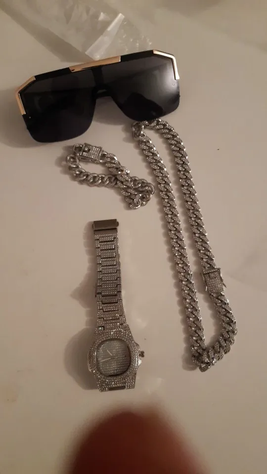 Цепочка мужская, 32 шт., ожерелье, часы, браслет в стиле хип-хоп, Майами, с кубинским покрытием, стразы