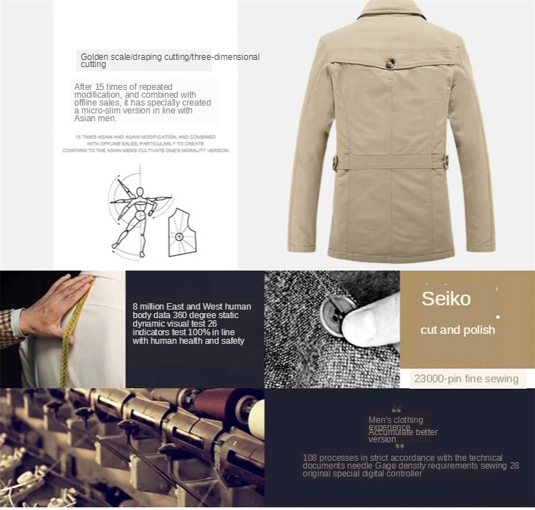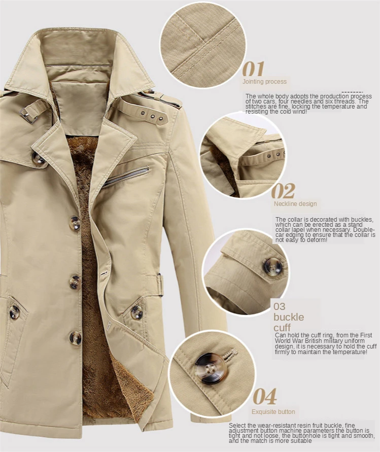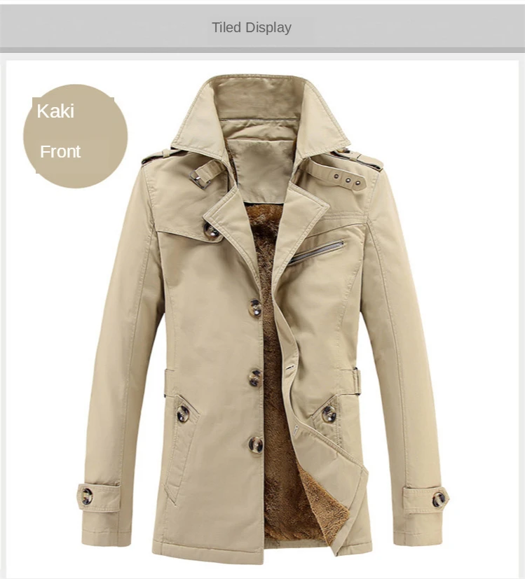Тренчкот мужской зимний, Классическая Повседневная теплая ветровка,...