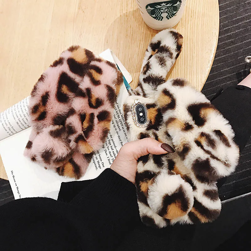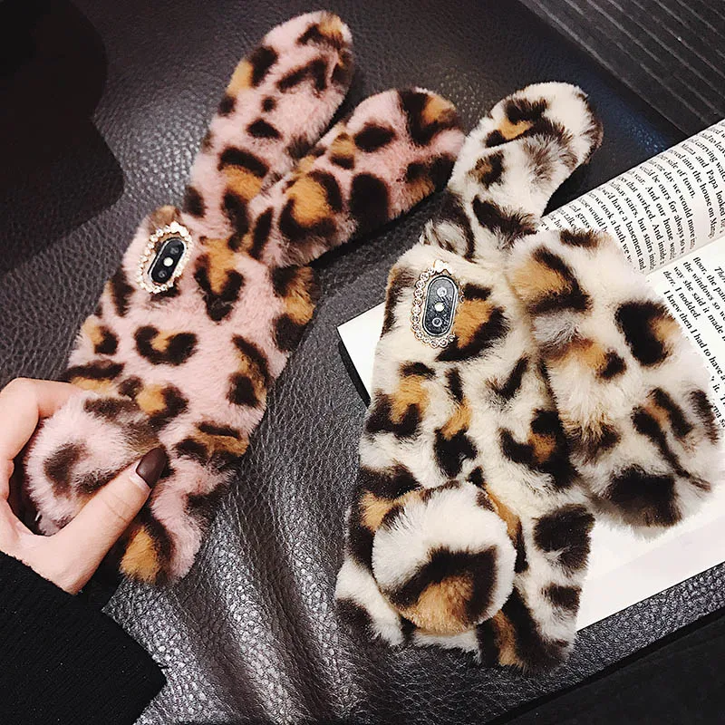 Модный теплый чехол с милым кроликом и пушистым леопардовым принтом...
