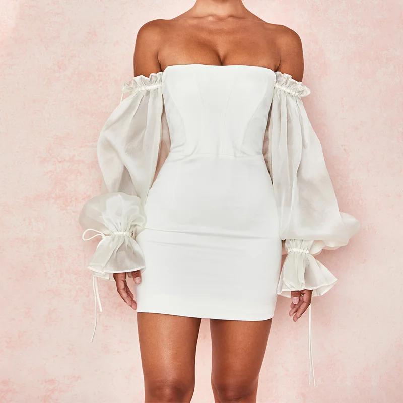 Женское вечервечерние мини-платье SRUBY, Белое Облегающее платье с ...