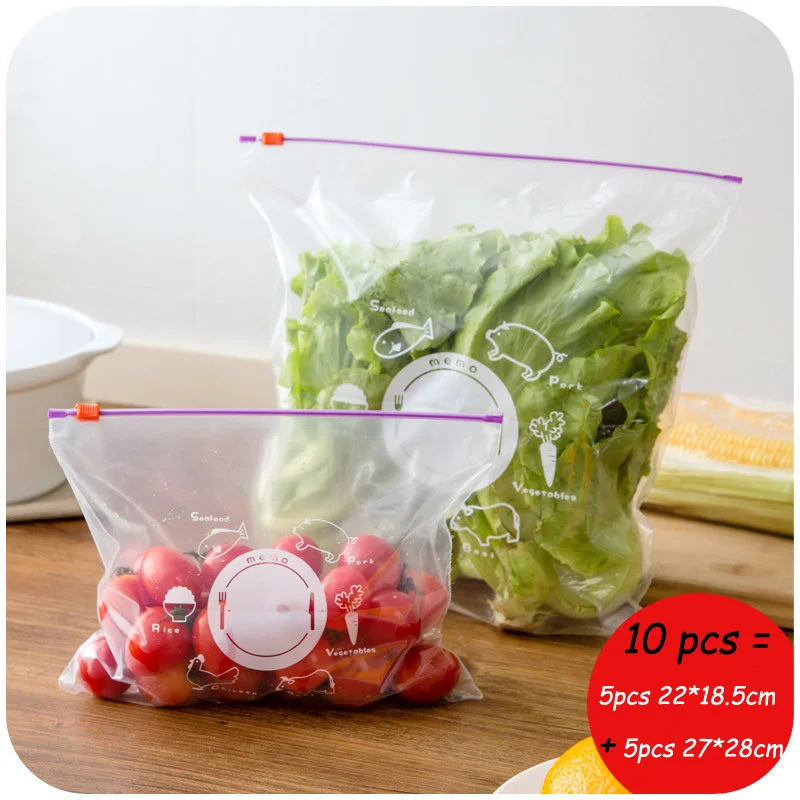 Многоразовые Пакеты на молнии для замораживания еды, полиэтиленовые пакеты с нагревательным замком для хранения продуктов, 10 шт.компл., кухонные аксессуары