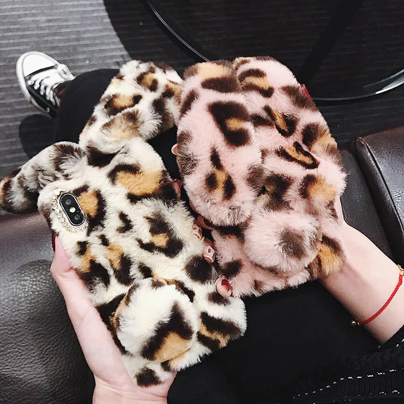 Модный теплый чехол с милым кроликом и пушистым леопардовым принтом...