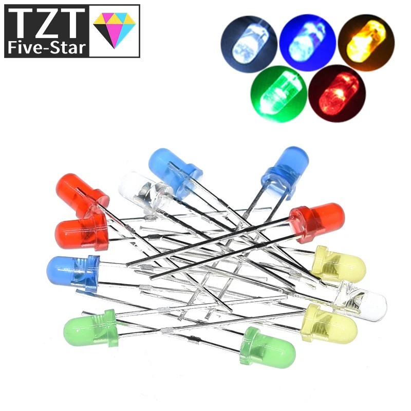 5 цветов s * 20 шт. = 100 шт.1 цвет = 100 шт. F3 3 мм светодиодный светильник ОД Ассорти комплект зеленый синий белый желтый красный набор компонентов сделай сам