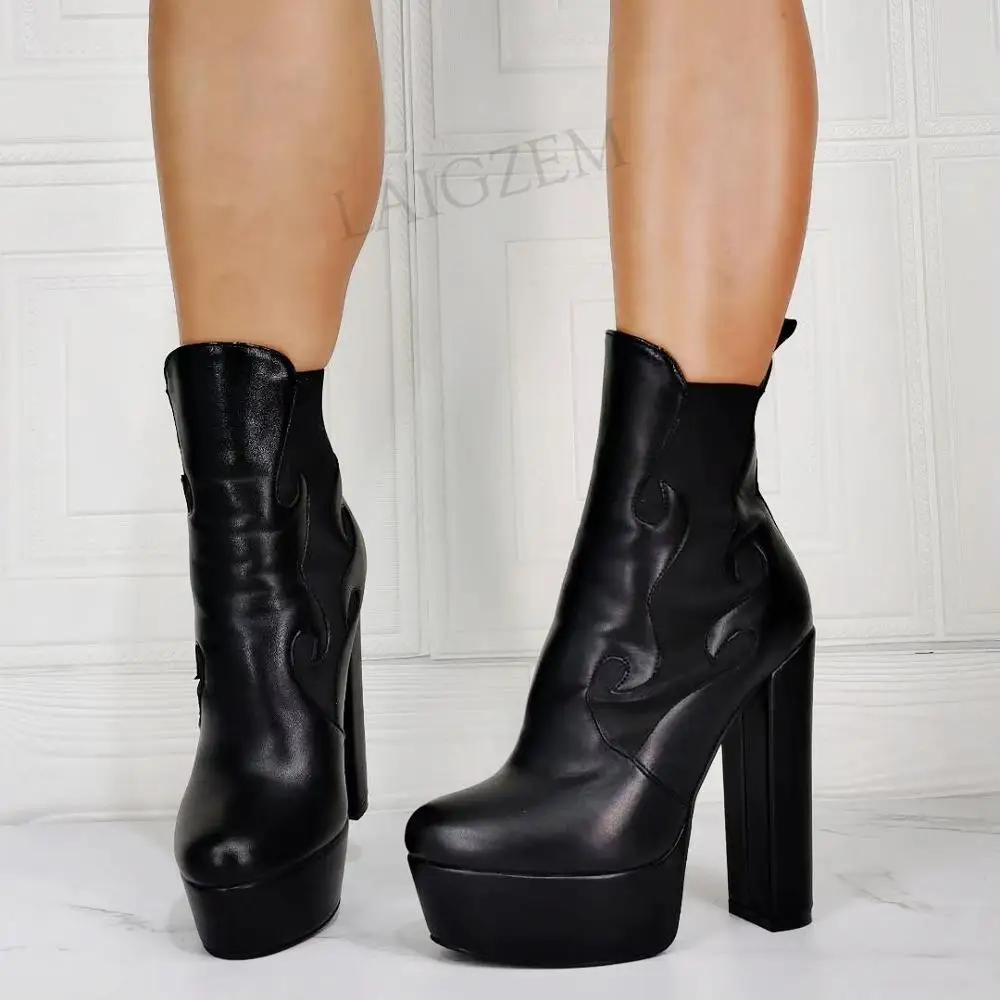 SEIIHEM женская обувь ботинки на платформе по голень обувь на высоких квадратных каблуках; Короткие ботиночки; Унисекс Женская обувь черного цвета; Сезон осень-зима; Женская обувь Размеры, 42, 44, 47 (Европа)