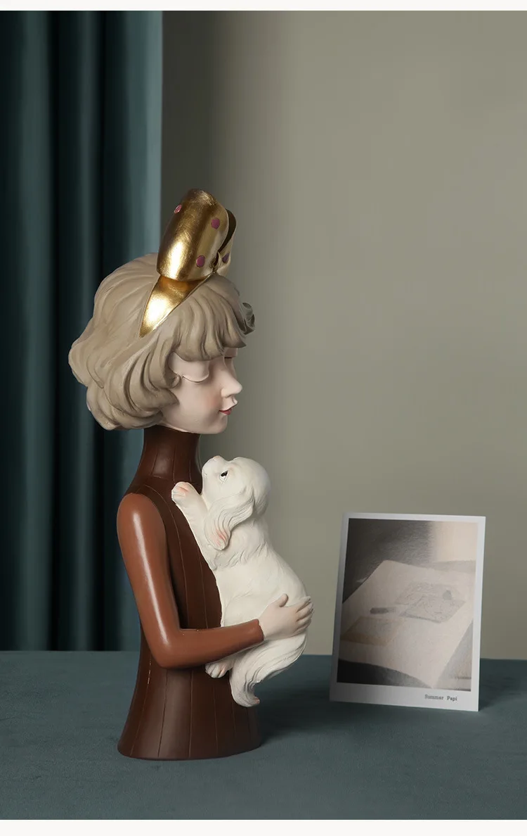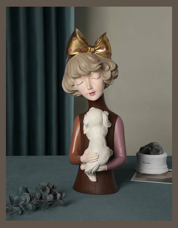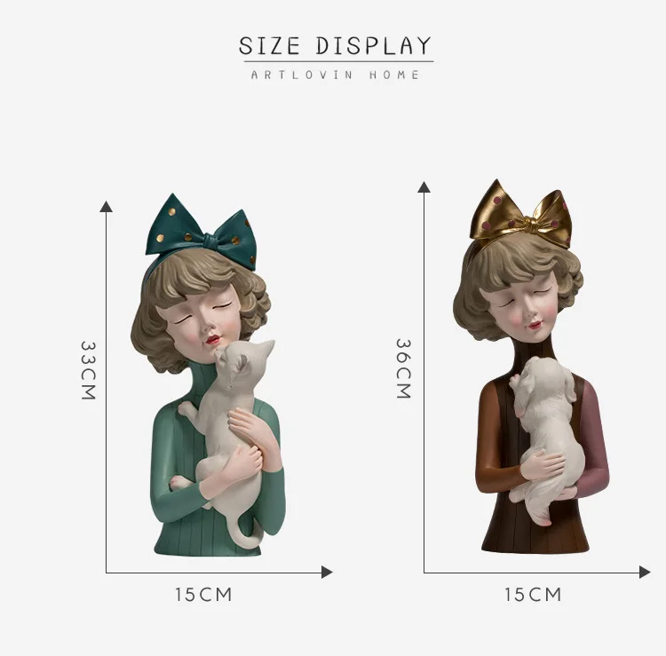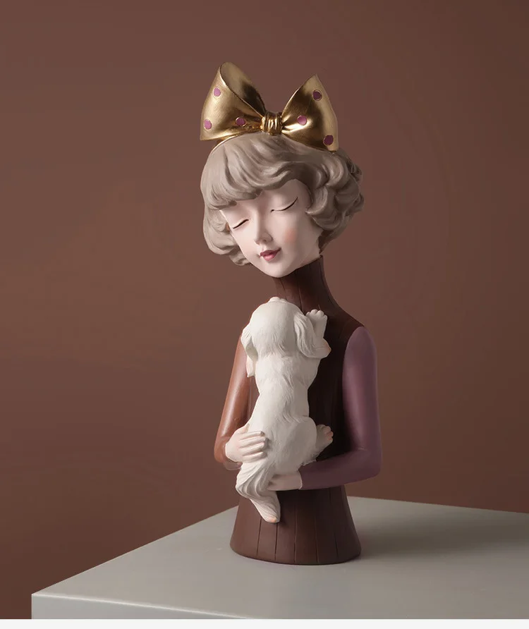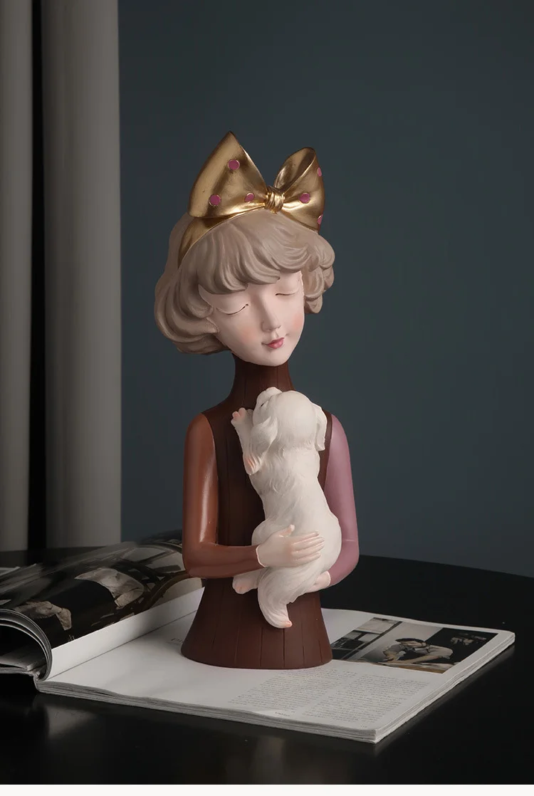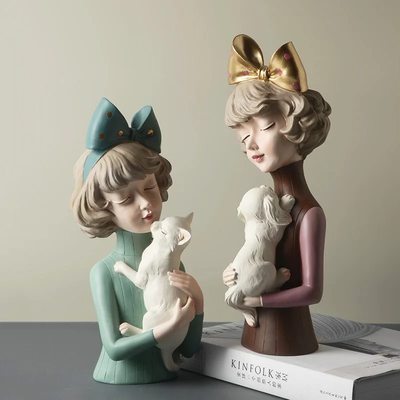 Заколка для волос с бантом, фигурка девушки, статуи женщины, скульптуры котят и собак для домашнего декора, ремесла, украшения для гостиной