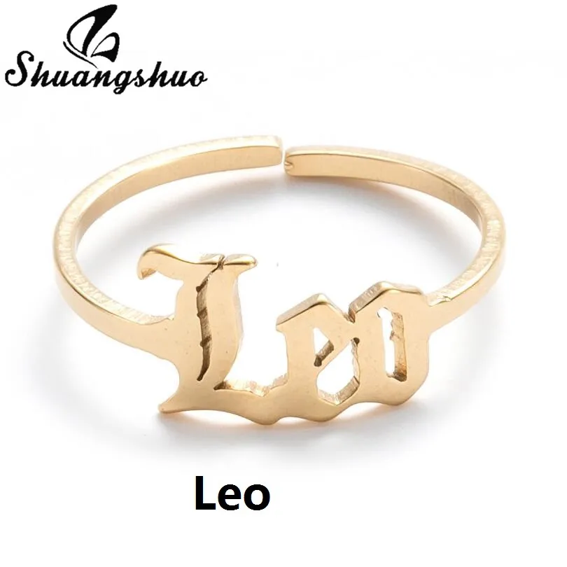Shuangshuo в стиле ретро из нержавеющей стали знак зодиака кольца для женщин 12 созвездий кольцо на палец с надписью Лев Дева Aries, модное ювелирное изделие