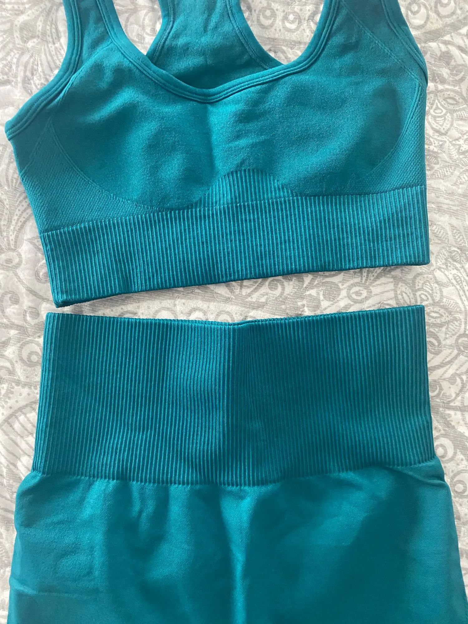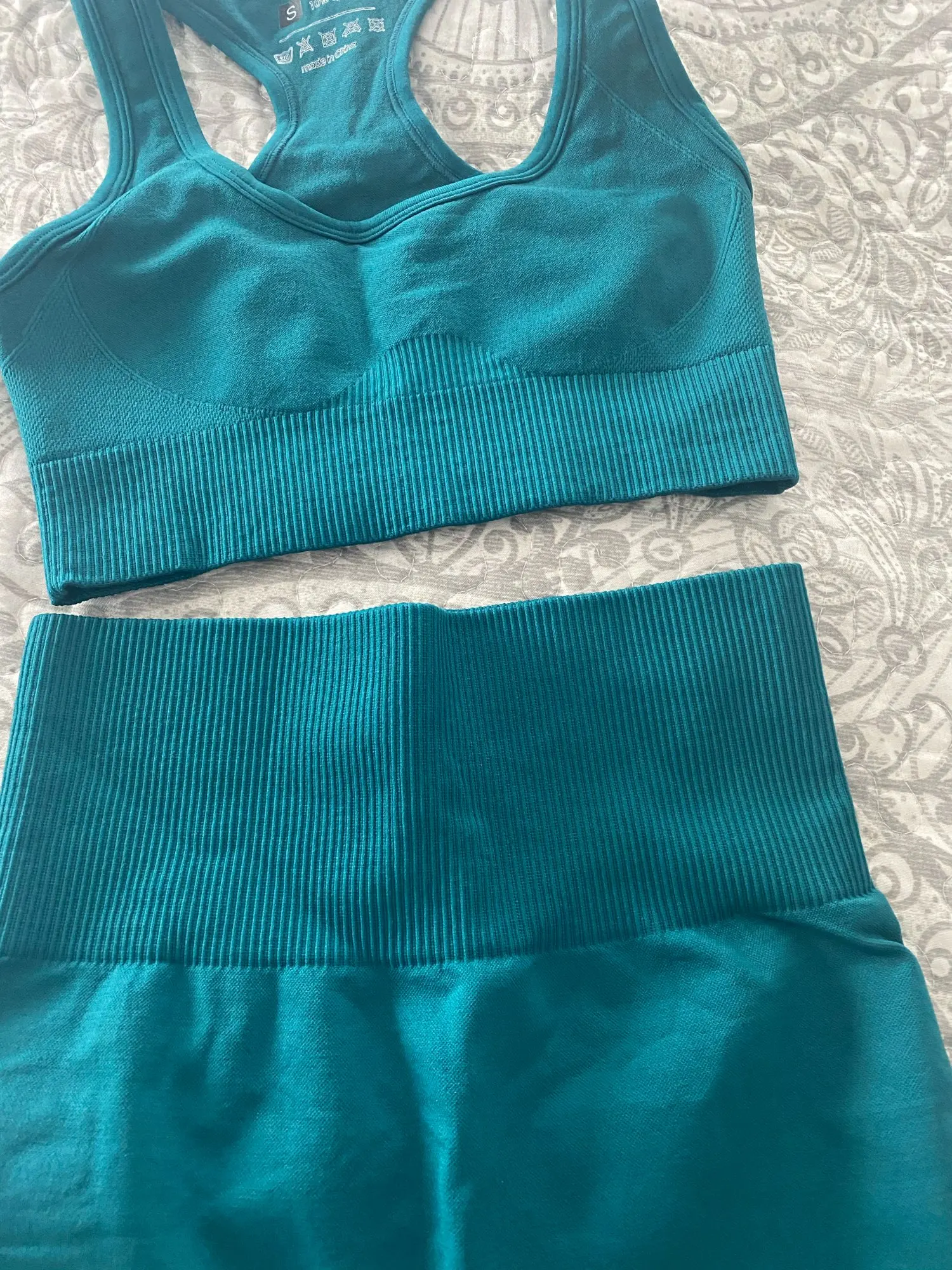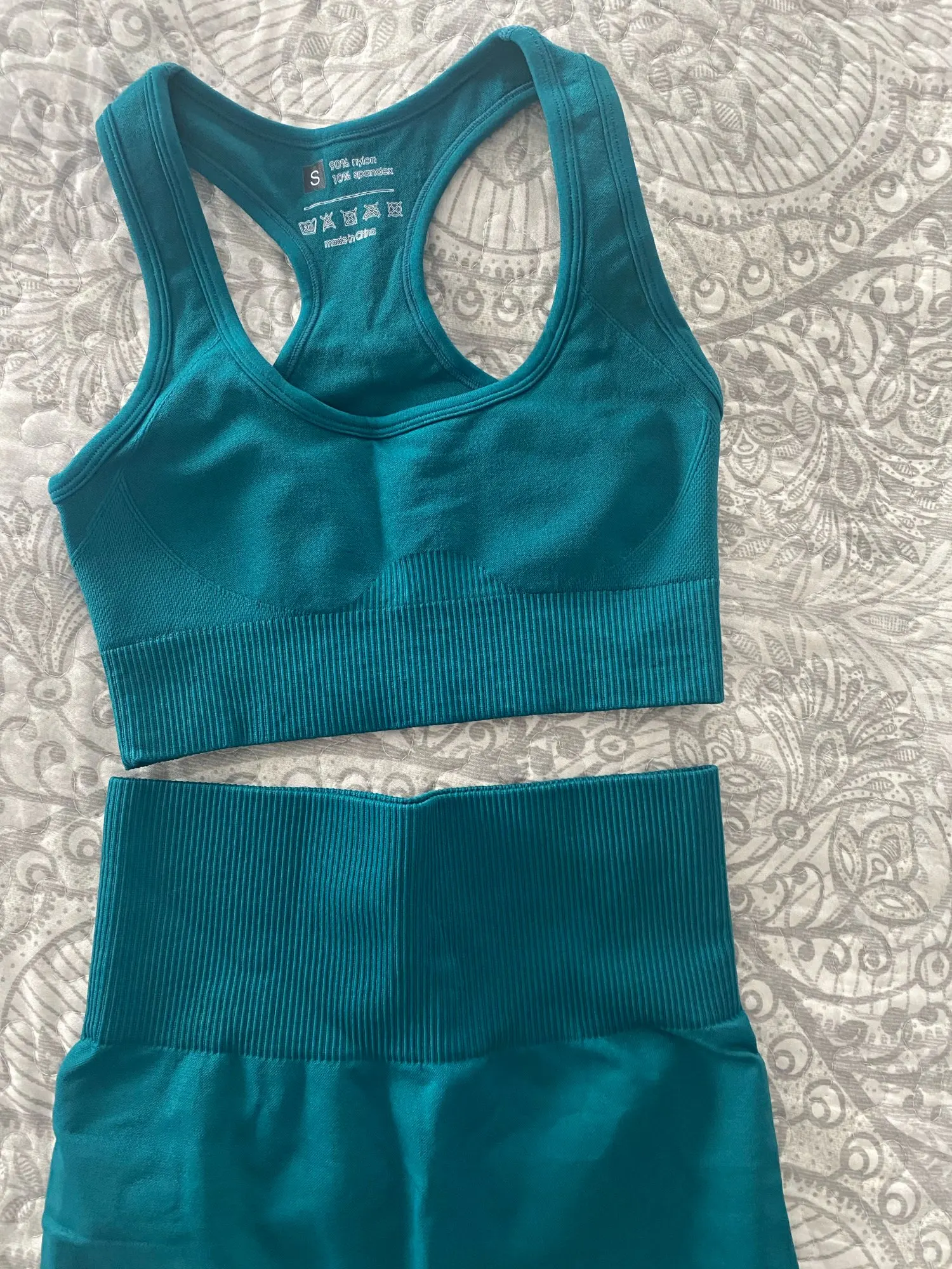 El conjunto es de buena calidad. Cuando abrí el paquete pensé que será muy pequeño pero me lo puse y me queda genial. El sujetador sujeta muy bien y no tuve problemas haciendo el ejercicio. lo recomiendo!