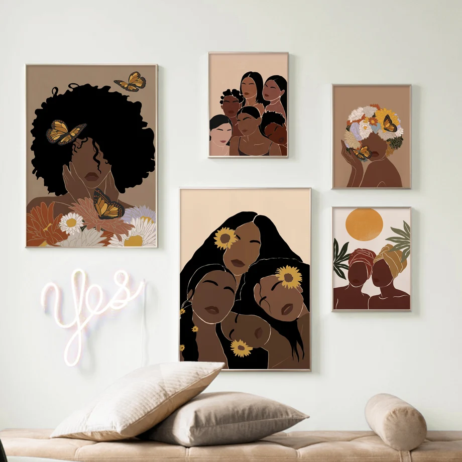 Африканская темнокожая девушка иллюстрация Абстрактная живопись на холсте скандинавские постеры и принты настенные картины для гостиной домашний декор