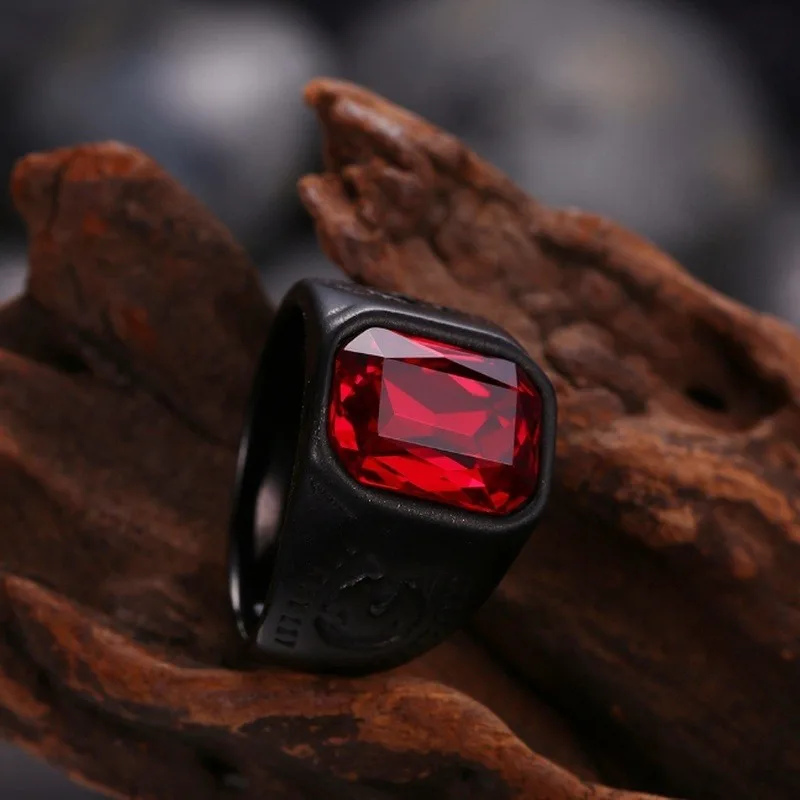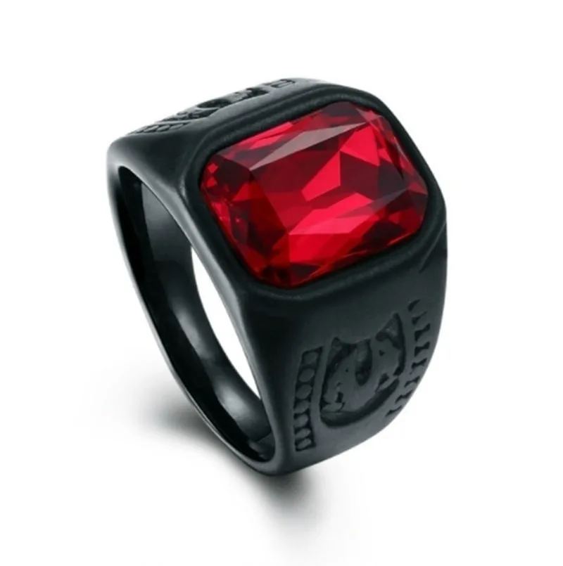 Мужское классическое кольцо с инкрустированным красным Цирконом